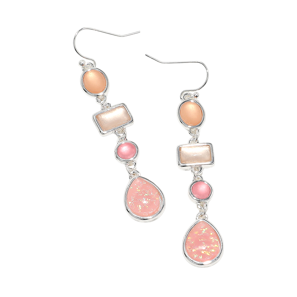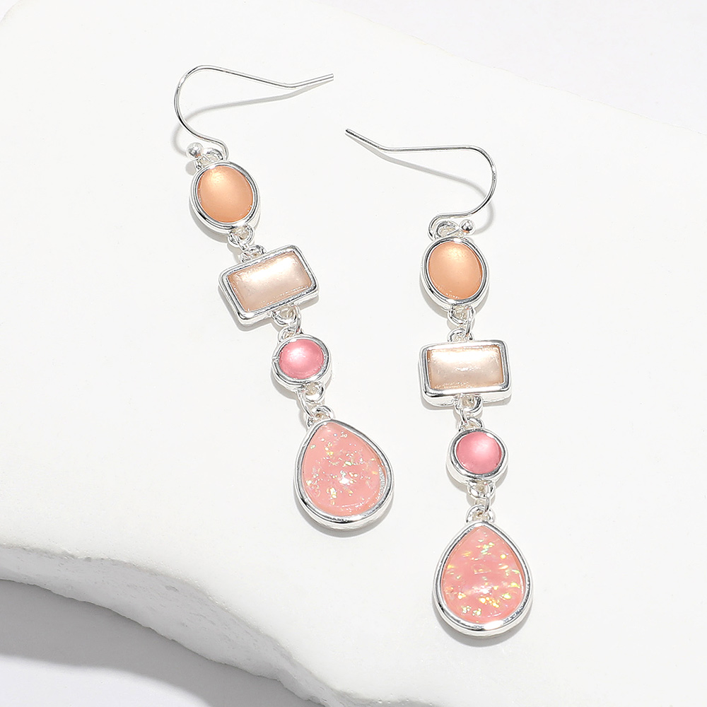 Square Rectangle Glass Stone Link Drop Dangle Earrings