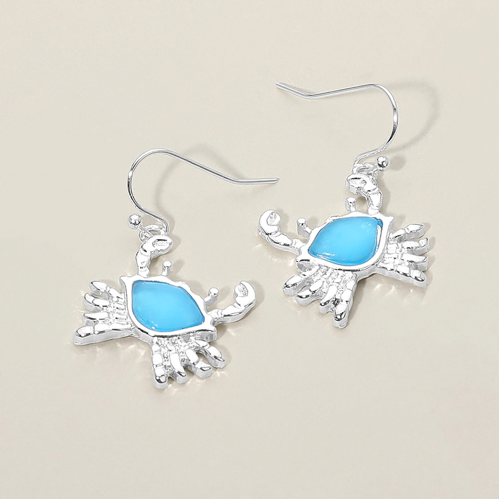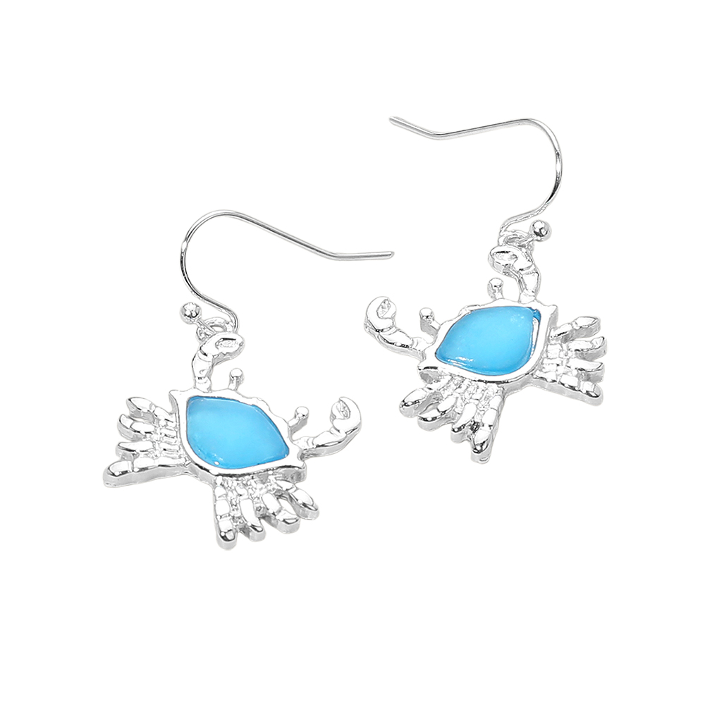 Sea Glass Crab Charm Drop Dangle Earrings