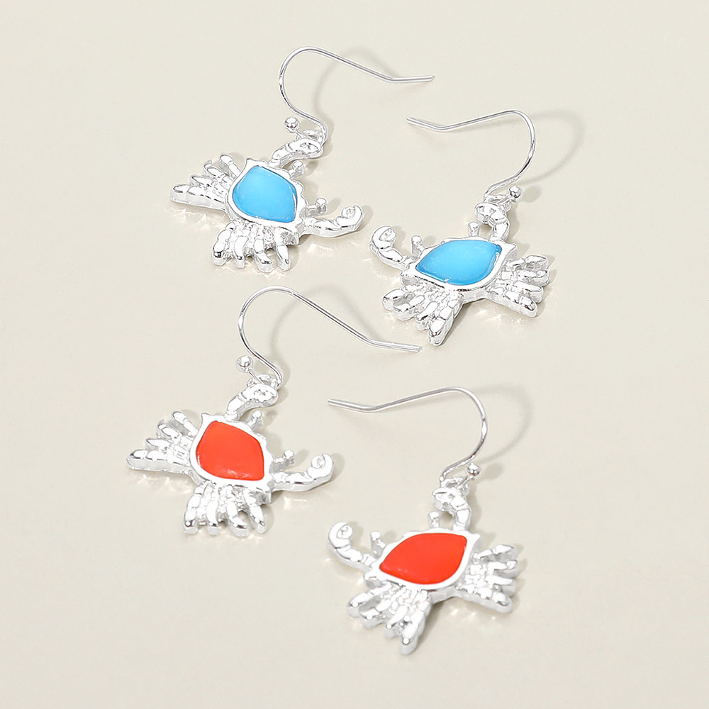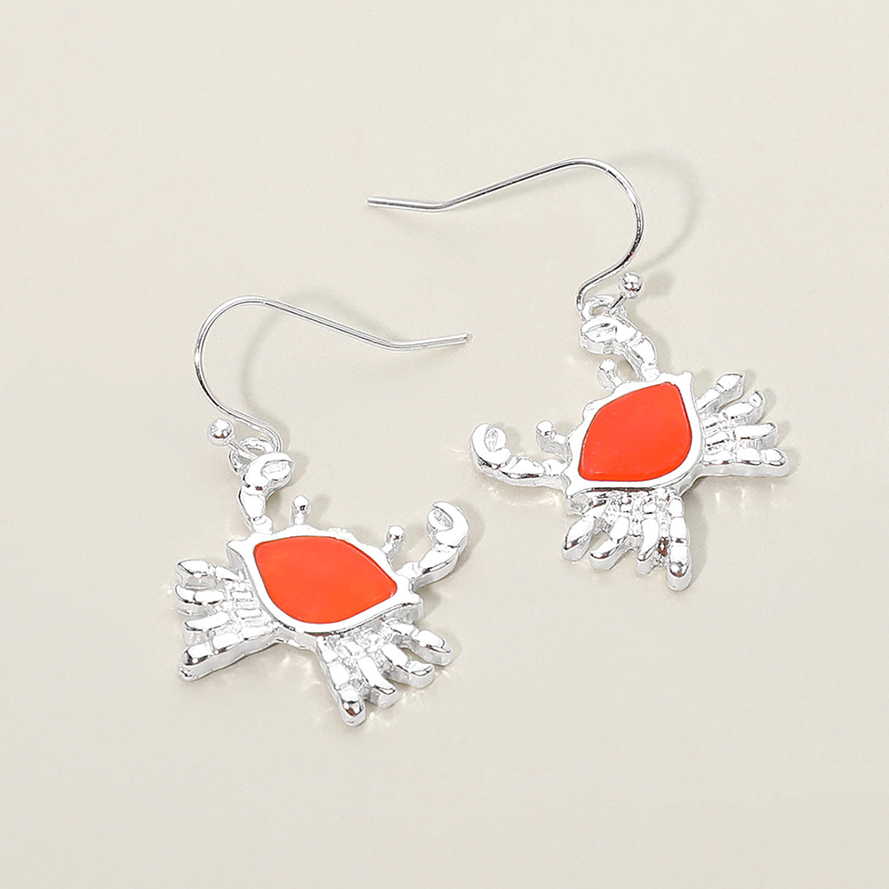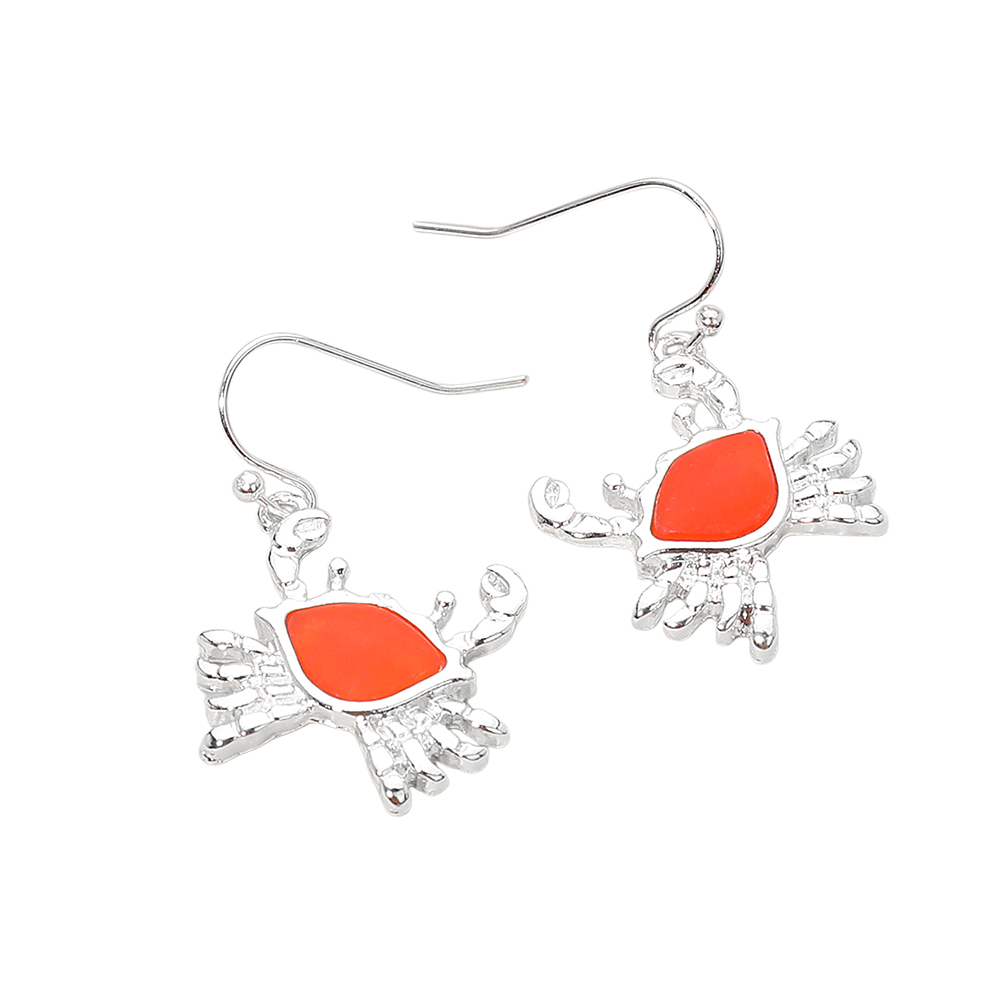Details • Size : 0.8" X 1.3" • Fish Hook Back • Playful crab dangle earrings featuring a detailed ocean-inspired design with a smooth accent center and free-moving hook style. Lightweight and eye-catching, these earrings are ideal for beach themes, summer outfits, coastal gift shops, resort accessories, and fun statement jewelry collections. • Lead and Nickel Compliant