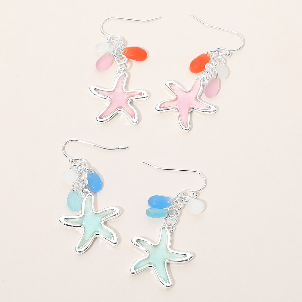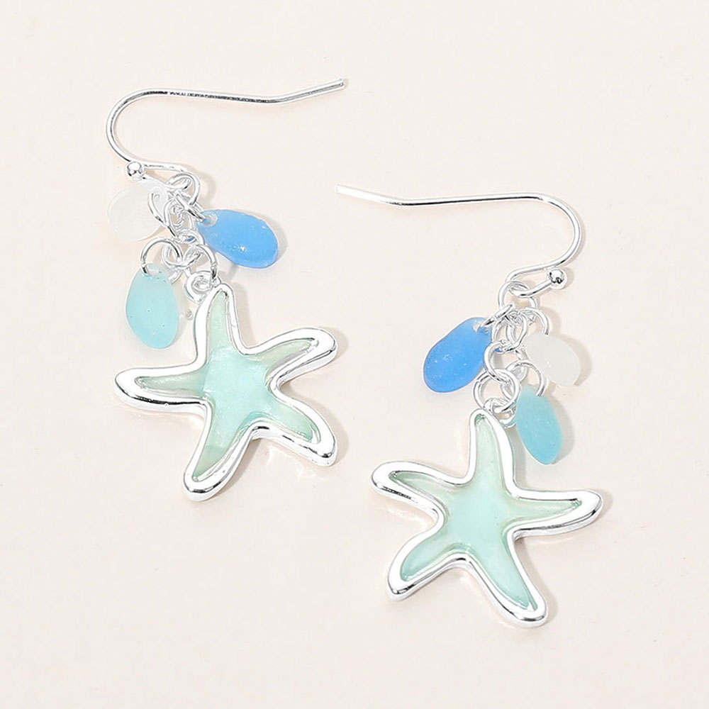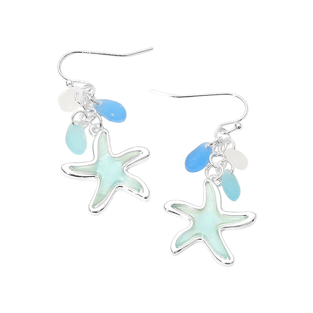 Sea Glass Starfish Charm Drop Dangle Earrings