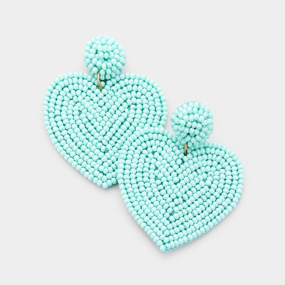 Mardi Gras Felt Back Seed Beaded Round Dangle Earrings