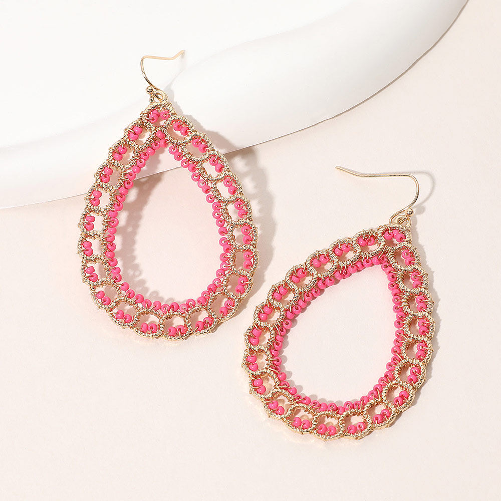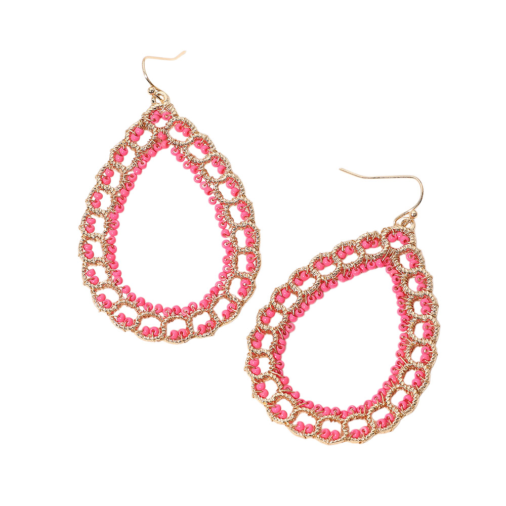 Seed Beaded Wrapped Open Teardrop Dangle Earrings