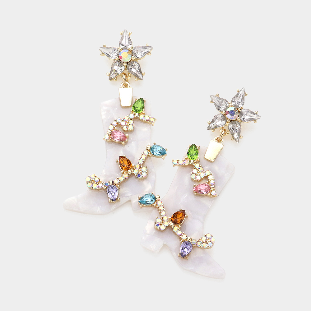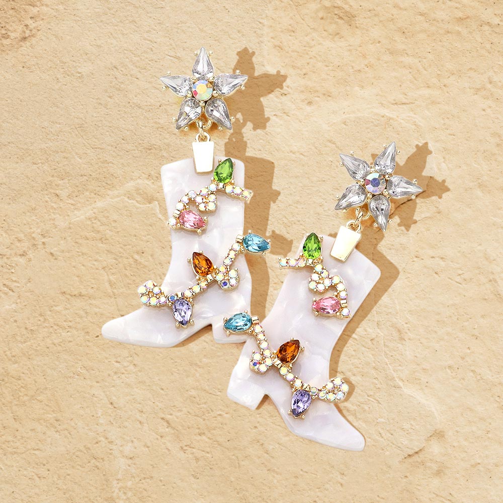 Stone Embellished Resin Cowboy Boot Dangle Earrings