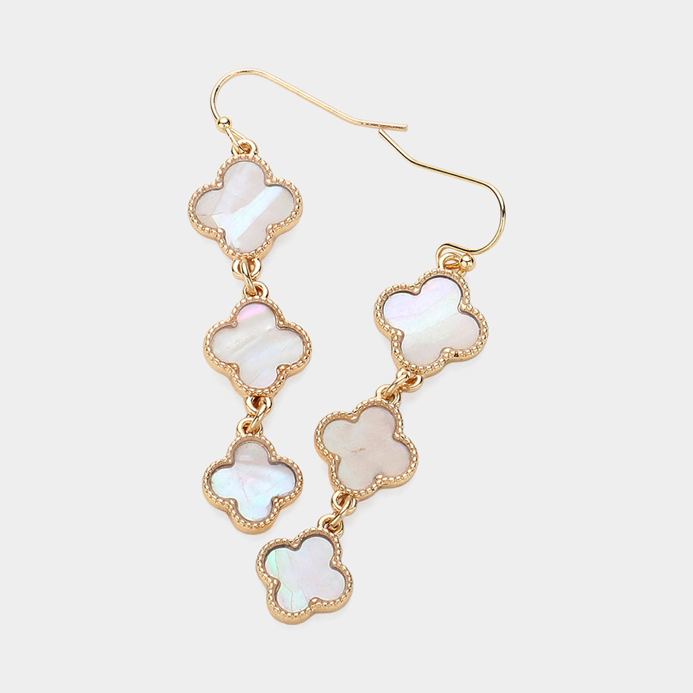 Triple Mother Of Pearl Quatrefoil Link Dropdown Earrings