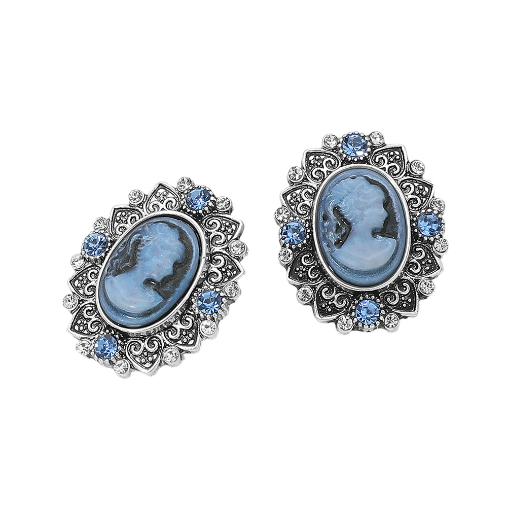 Details • Size : 1" X 1.25" • Post Back • Add a touch of timeless elegance with these vintage cameo oval stud earrings featuring an ornate frame and intricate detailing. Perfect for classic or formal looks, these earrings capture antique-inspired charm that complements both modern and traditional styles beautifully. • Lead and Nickel Compliant