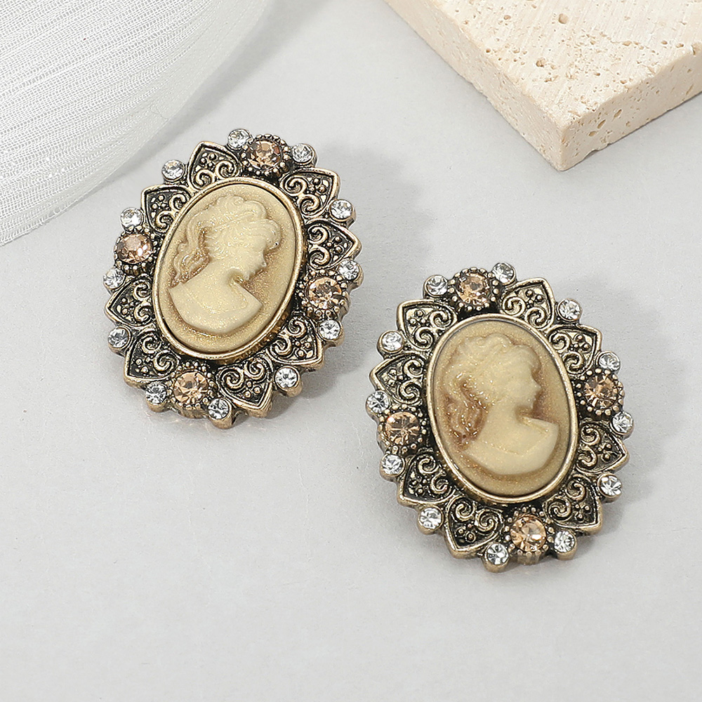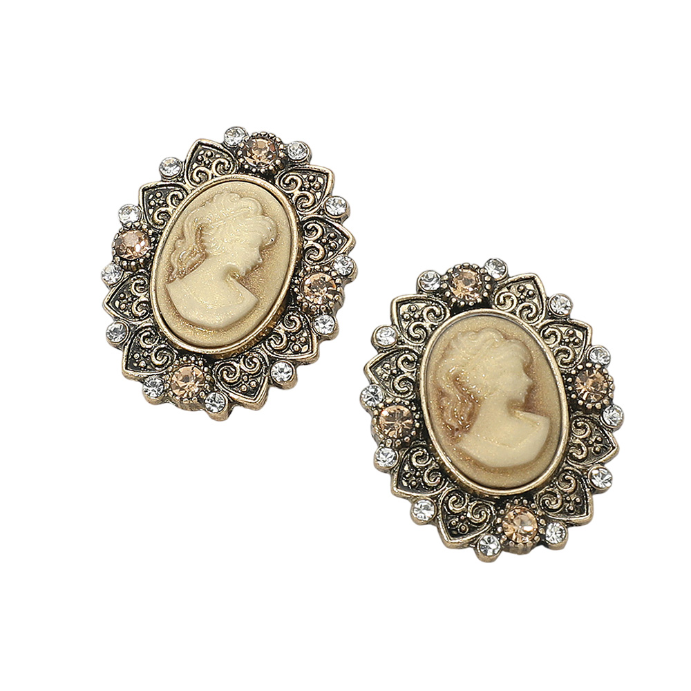 • Add a touch of timeless elegance with these vintage cameo oval stud earrings featuring an ornate frame and intricate detailing. Perfect for classic or formal looks, these earrings capture antique-inspired charm that complements both modern and traditional styles beautifully.