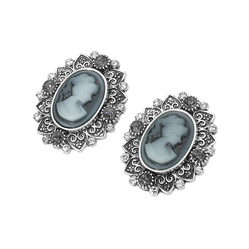 • Add a touch of timeless elegance with these vintage cameo oval stud earrings featuring an ornate frame and intricate detailing. Perfect for classic or formal looks, these earrings capture antique-inspired charm that complements both modern and traditional styles beautifully.