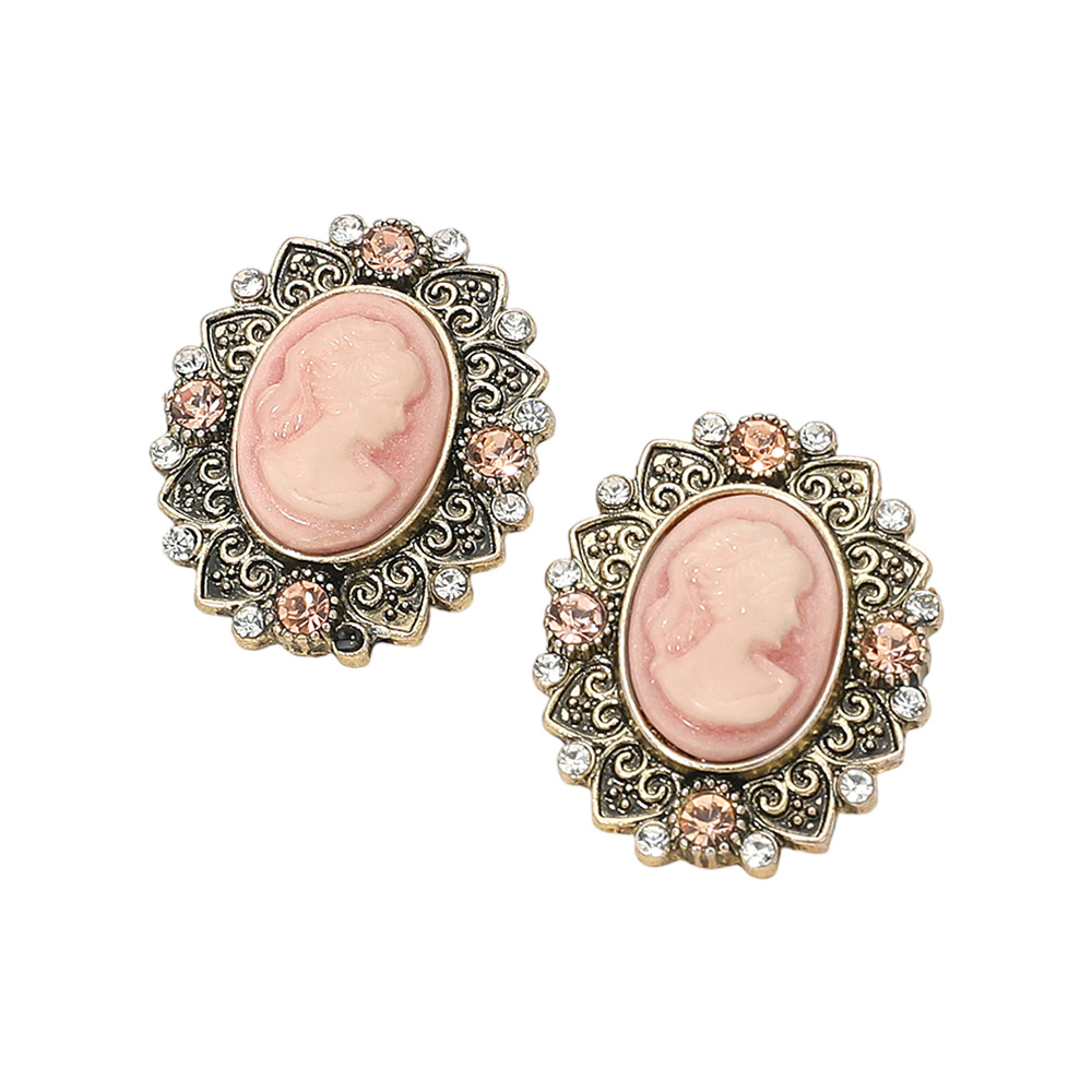 Crystal Accent Vintage Cameo Drop Dangle Earrings