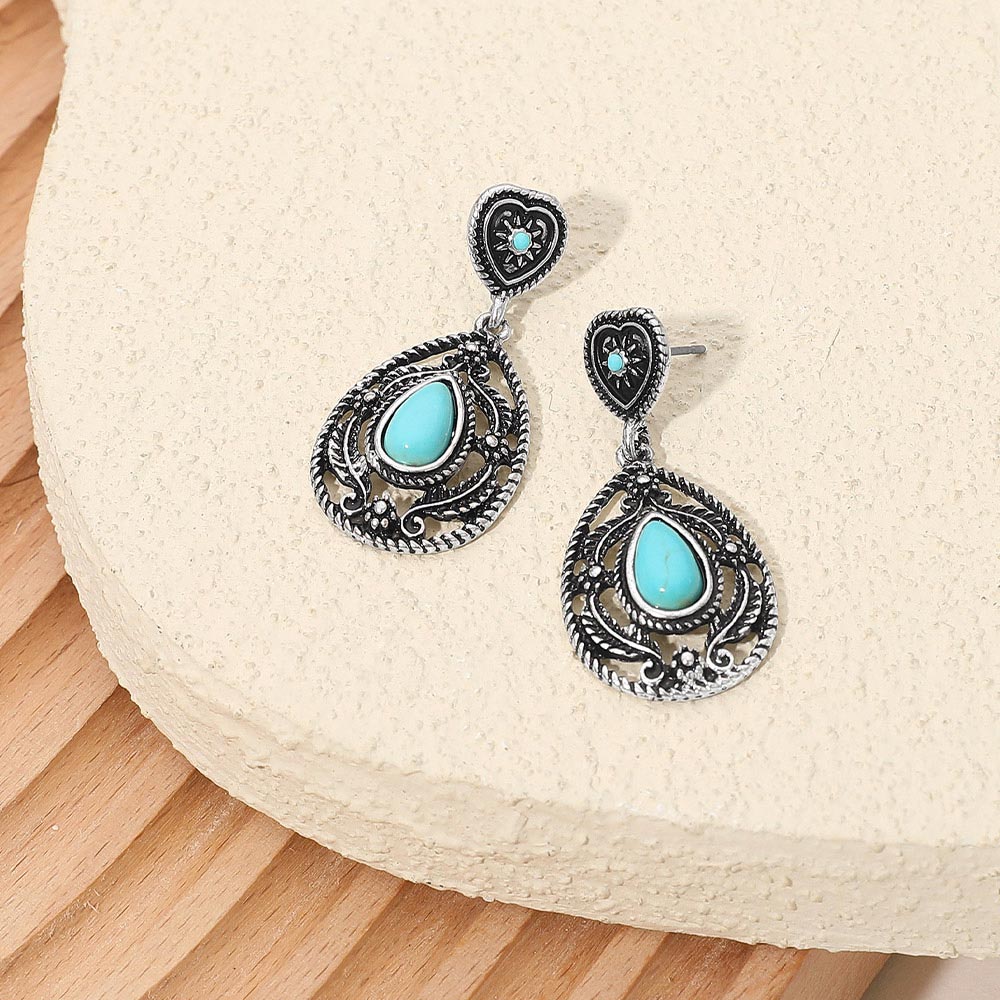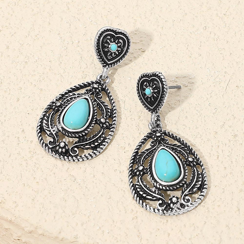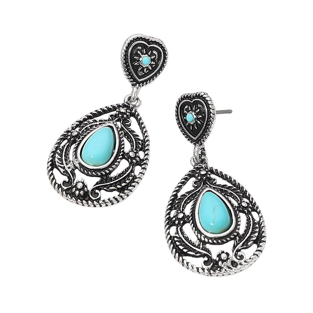 Details • Size : 0.75" X 1.6" • Post Back • Add bohemian elegance to your look with these Vintage Teardrop Boho Earrings. Featuring intricate filigree detailing and a striking teardrop centerpiece, this pair exudes artistic charm and timeless appeal—perfect for casual wear, festivals, or elevating everyday style with a unique touch. • Lead and Nickel Compliant