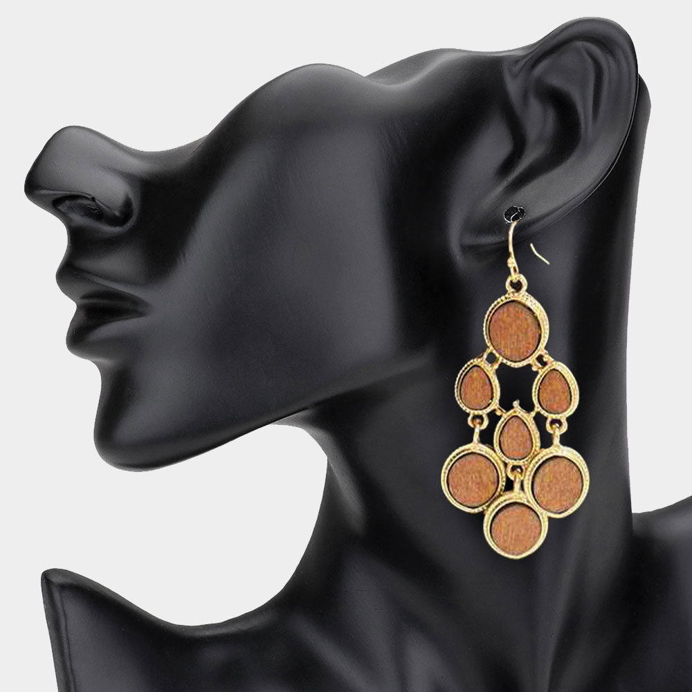 Wooden Charm Hanging Open Oval Dangle Earrings