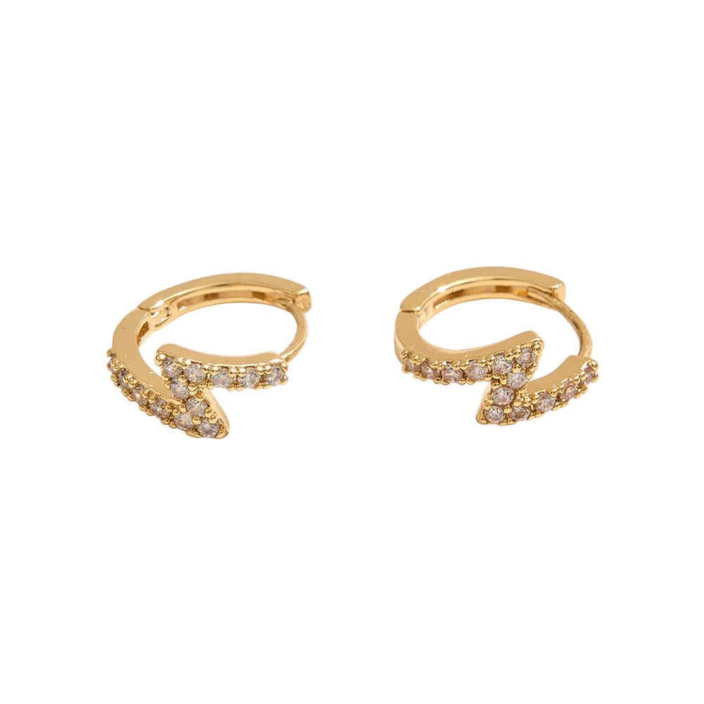 Details • Size : 0.6" X 0.6" X 0.25" • Huggie Back • These V-shaped hoop earrings bring a fresh twist to a classic style, featuring shimmering CZ accents that catch the light beautifully. Perfect for adding a chic, modern touch to both everyday wear and special occasions, they balance elegance with contemporary flair. • Brass • CZ Cubic Zirconia • Gold Dipped • Hypoallergenic • Lead and Nickel Compliant • Made In Korea
