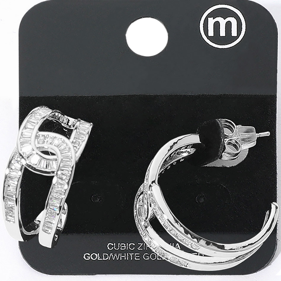 Gold Dipped CZ Baguette Stone Swirl Link Hoop Earrings Gold Dipped CZ Baguette Stone Swirl Link Hoop Earrings