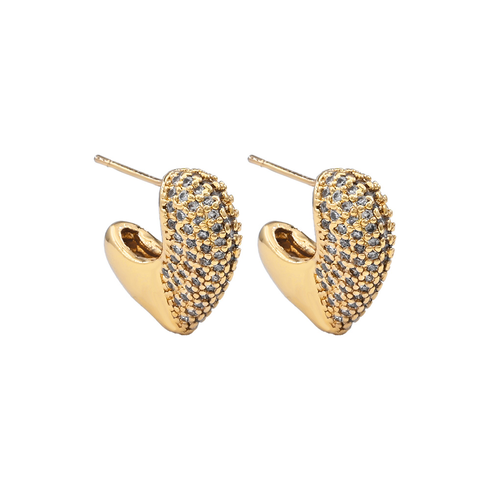 Details • Size : 0.7" X 0.7" • Post Back • Add a touch of elegance with these curved hoop earrings adorned with shimmering crystal accents. Their sculptural design offers a modern twist on a classic silhouette, making them a versatile accessory perfect for elevating everyday wear or complementing evening looks. • CZ Cubic Zirconia • Gold Dipped • Lead and Nickel Compliant