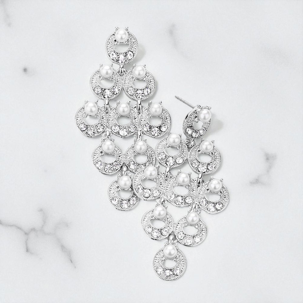 Pearl Centered Bling Studded Oversized Flower Pointed Necklace