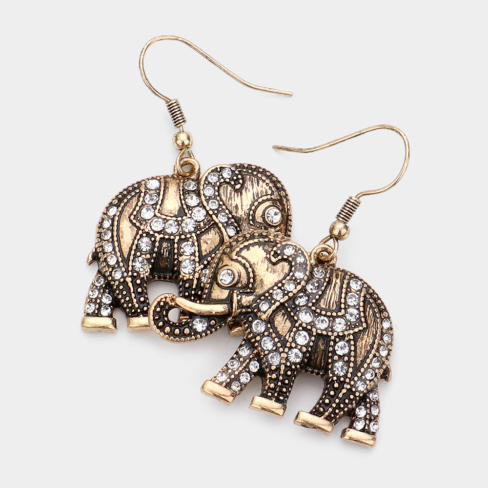 Rhinestone Embellished Metal Elephant Dangle Earrings