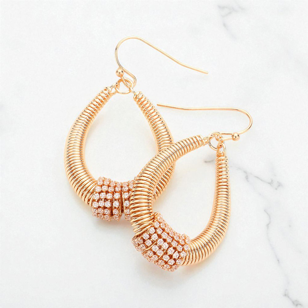 Rhinestone Ring Pointed Open Teardrop Dangle Earrings