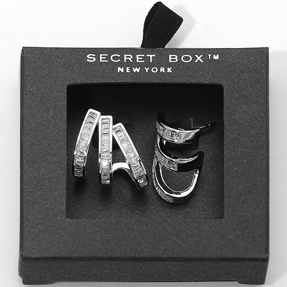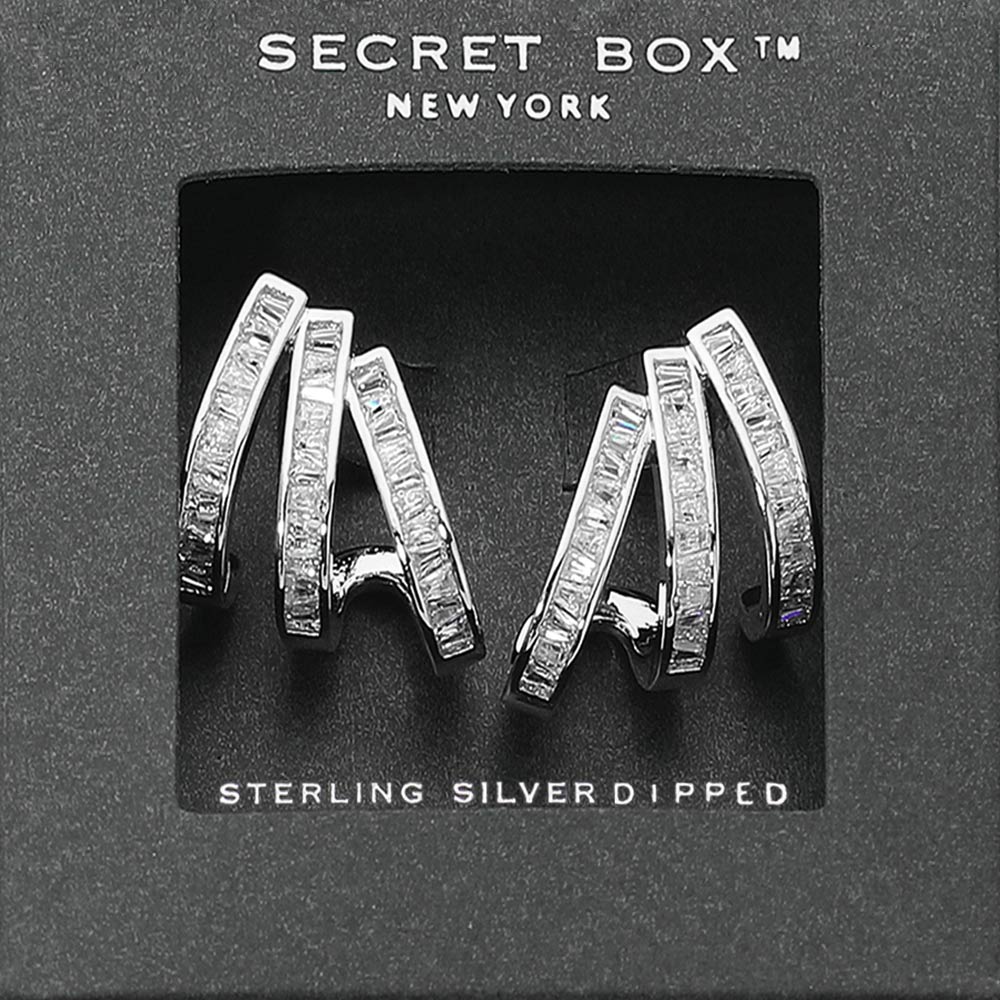 Details • Size : 0.75" X 0.7" • Post Back • Elevate your accessory game with these triple bar earrings, featuring a sleek geometric design and shimmering stone accents. Their modern silhouette offers the perfect mix of elegance and edge, making them ideal for both everyday wear and special occasions. • Sterling Silver Post