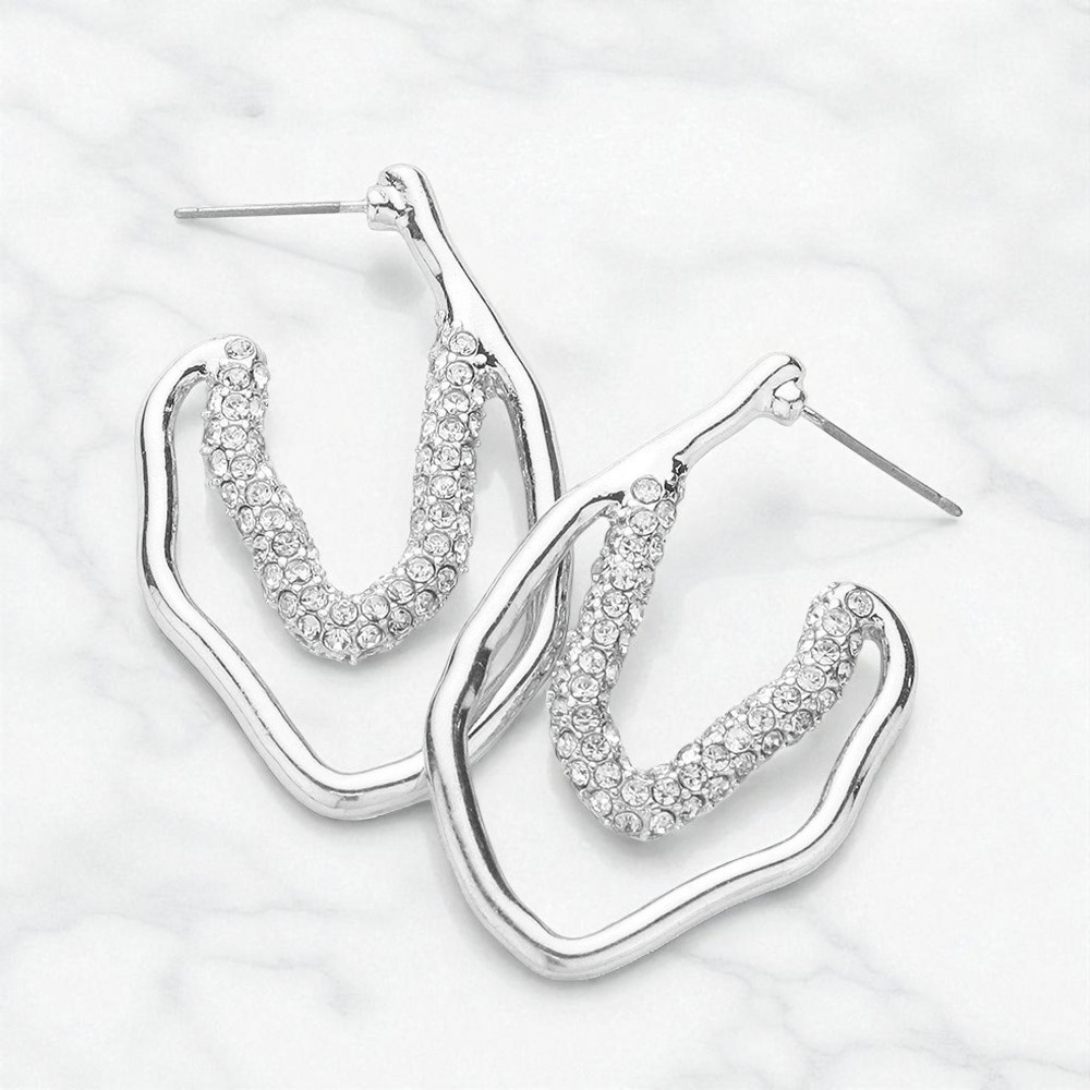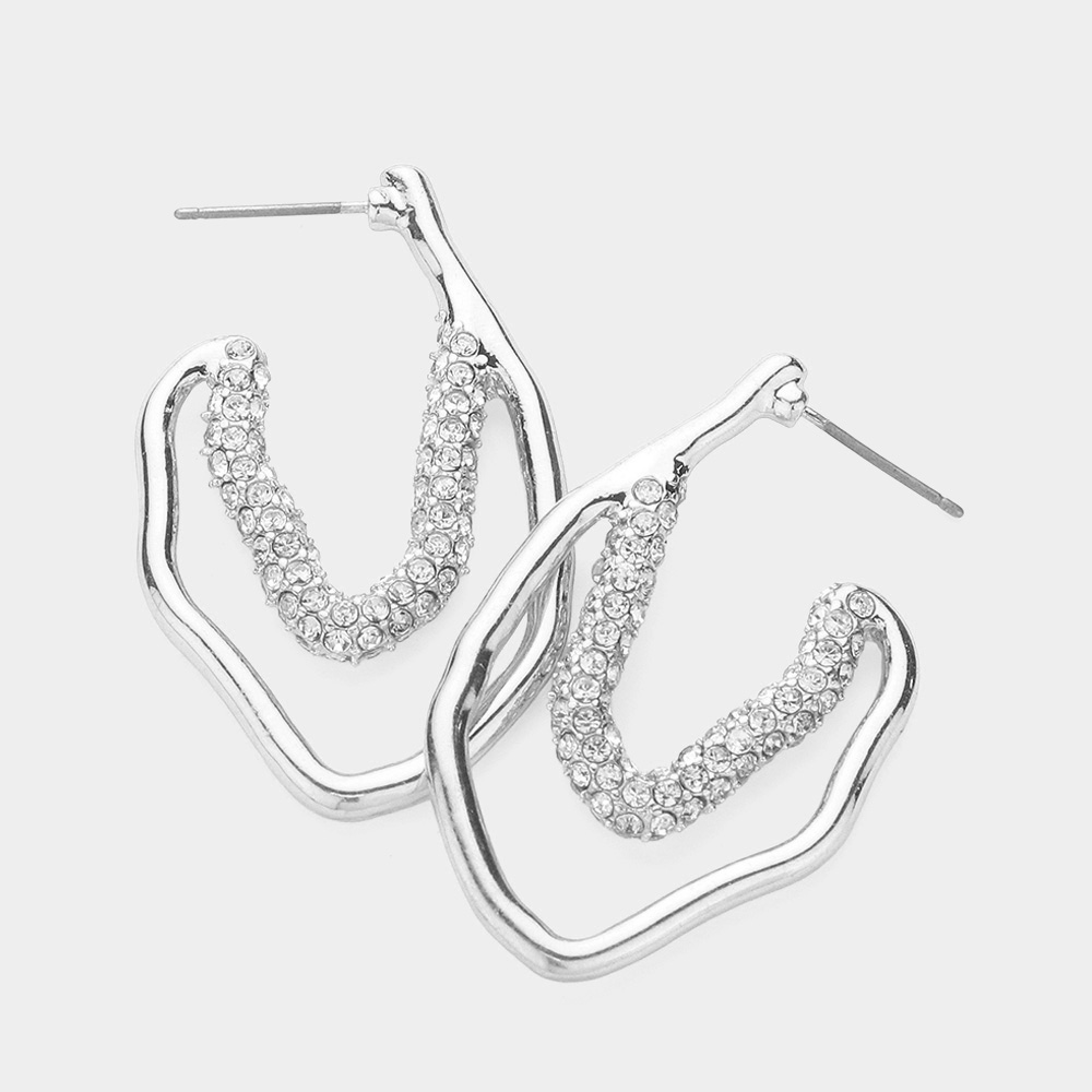 Stone Paved Pointed Abstract Metal Wire Hoop Earrings