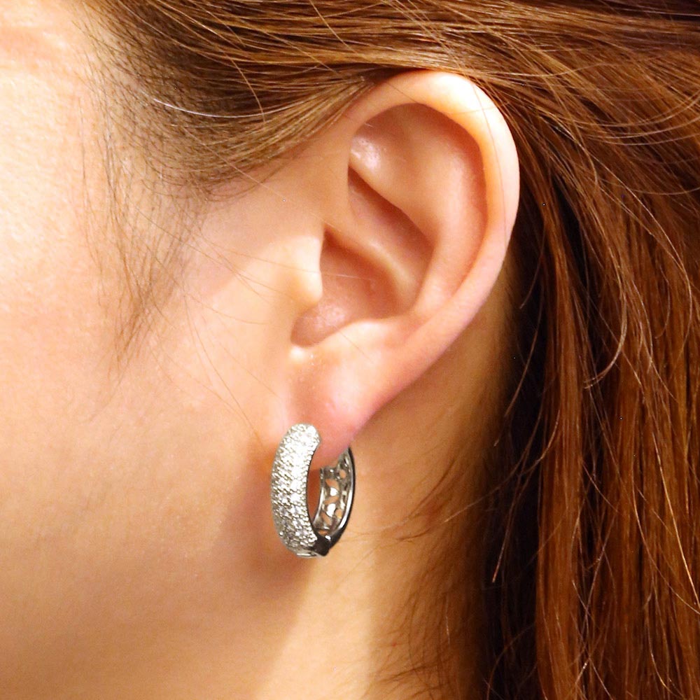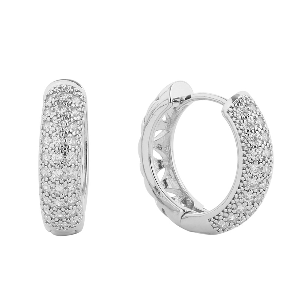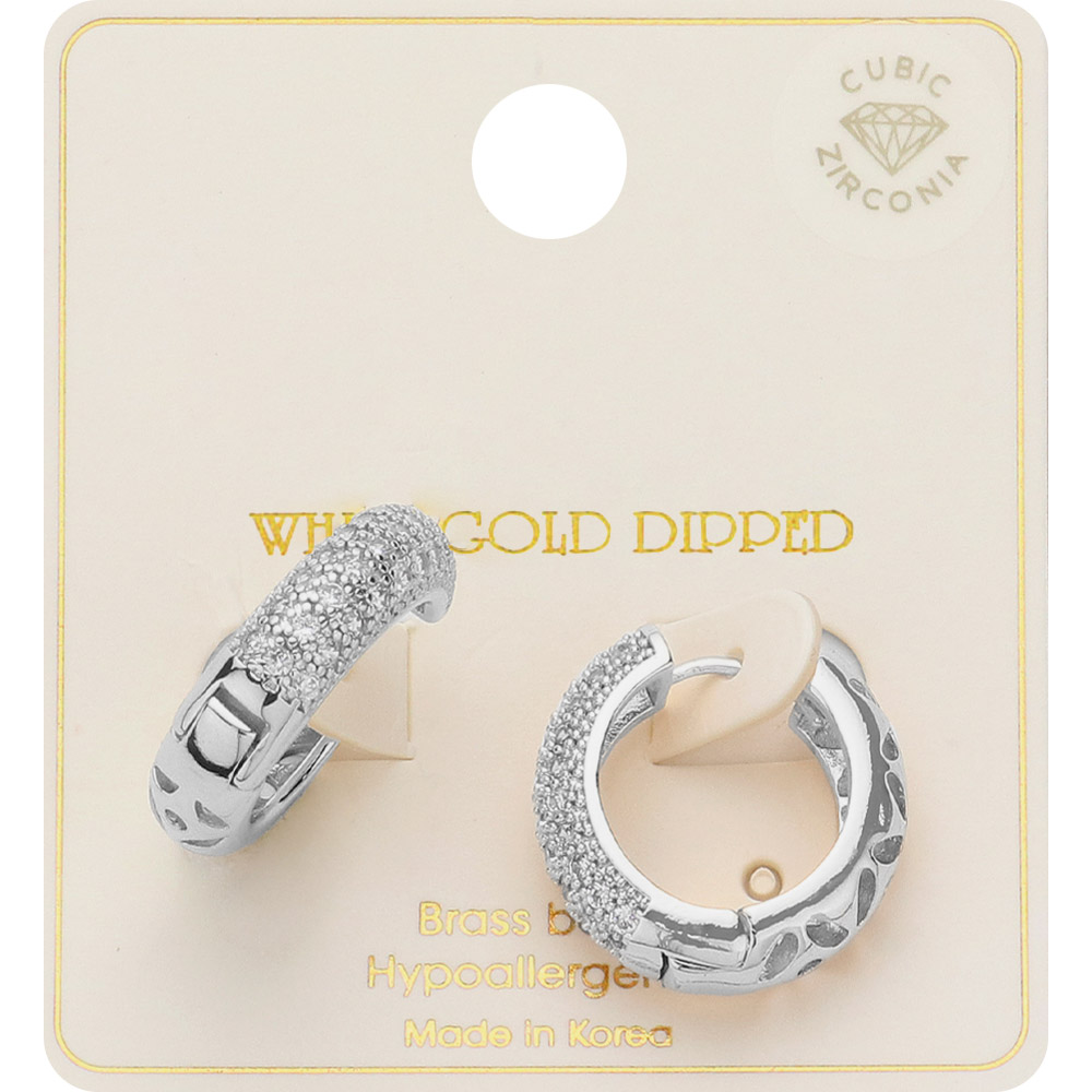 White Gold Dipped CZ Stone Paved Huggie Hoop Earrings