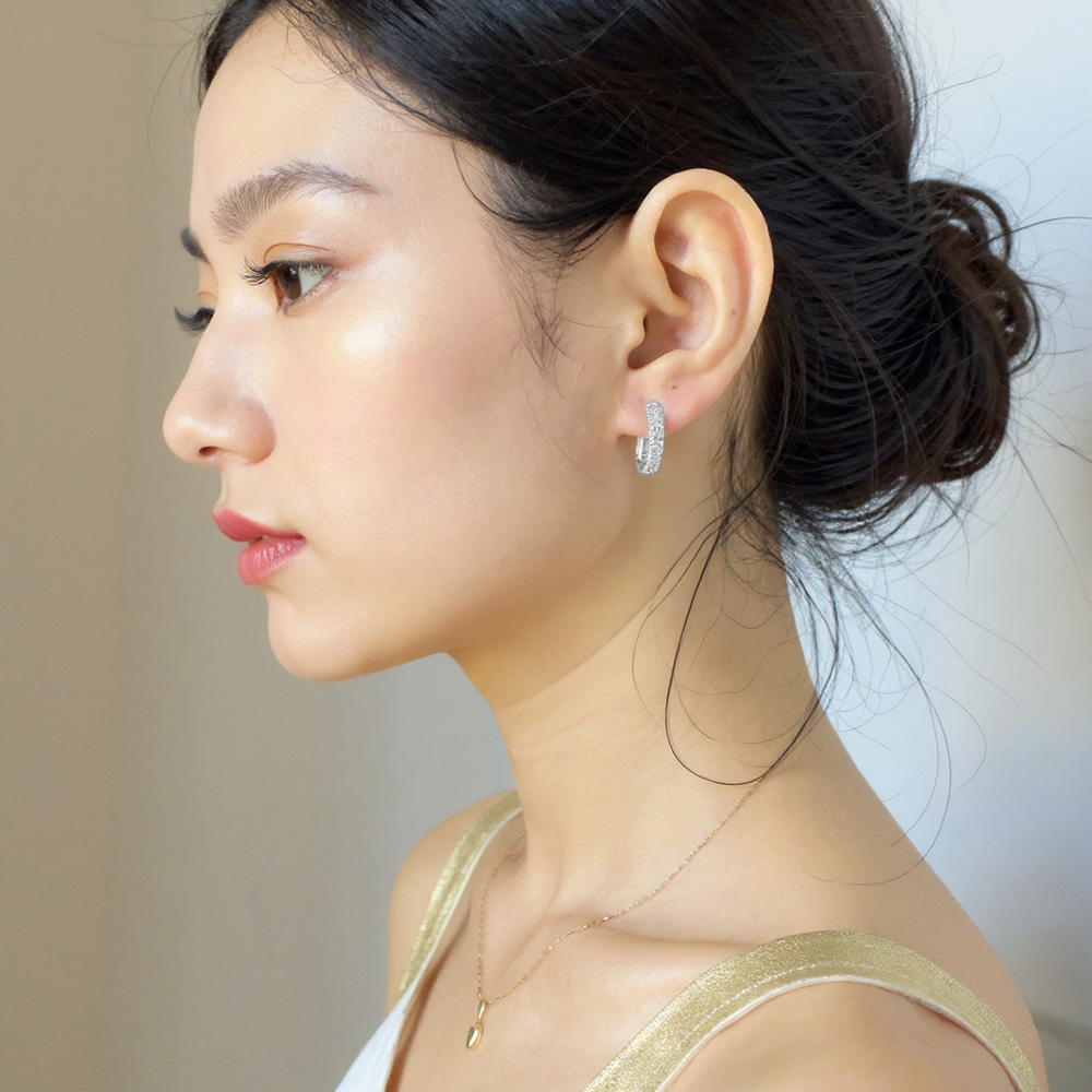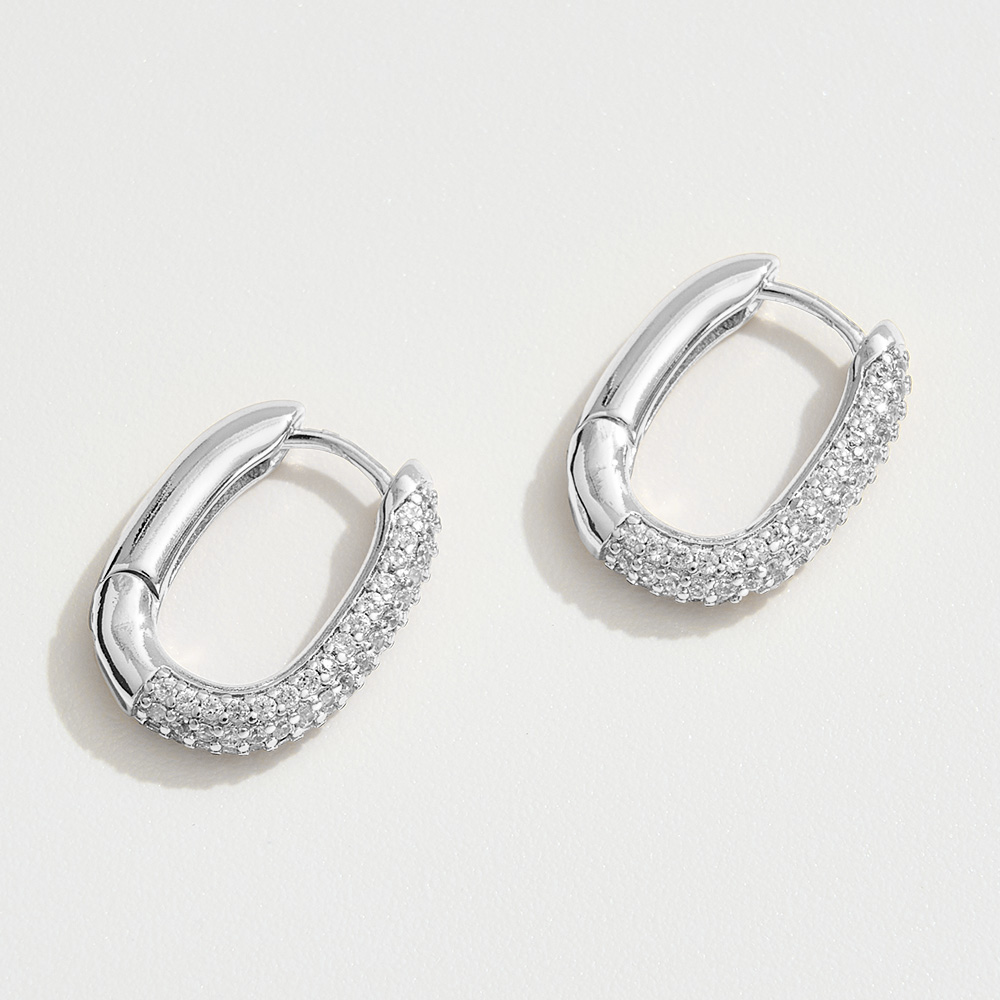 Details • Size : 0.6" X 0.75" • Huggie Back • Dazzle in understated luxury with these CZ pave oval huggie earrings. Featuring a sleek silhouette accented with sparkling cubic zirconia, they offer the perfect blend of elegance and versatility, making them an ideal accessory for elevating both everyday and evening looks. • Brass • CZ Cubic Zirconia • Gold Dipped • Hypoallergenic • Lead and Nickel Compliant • Made In Korea