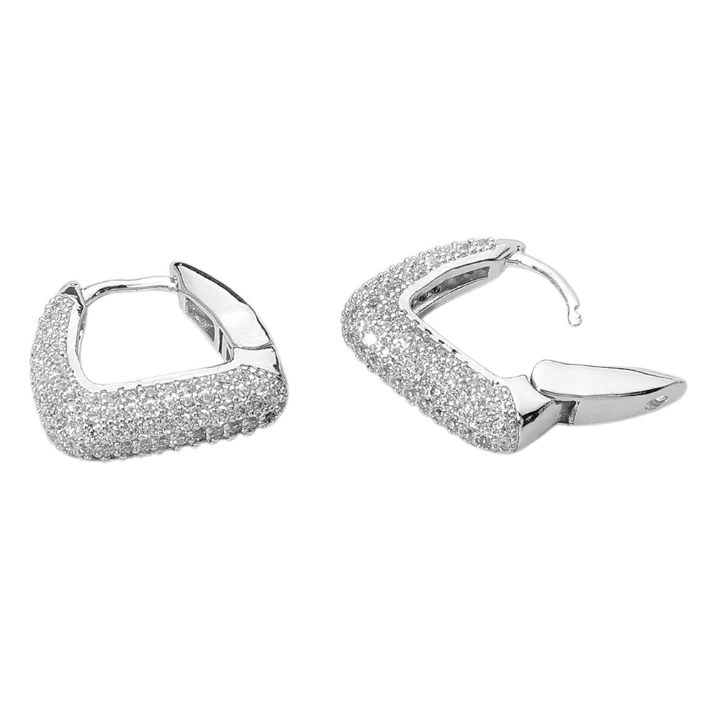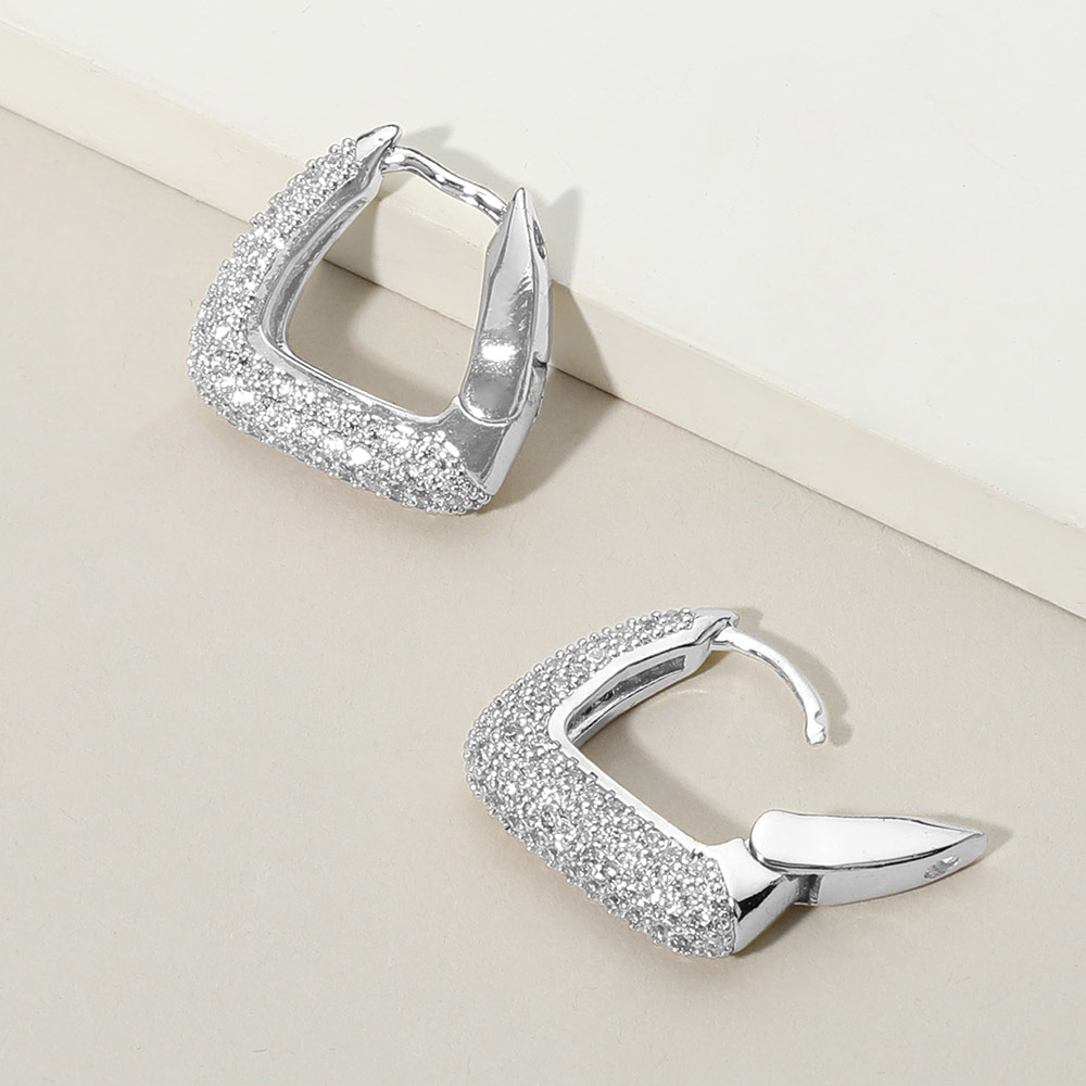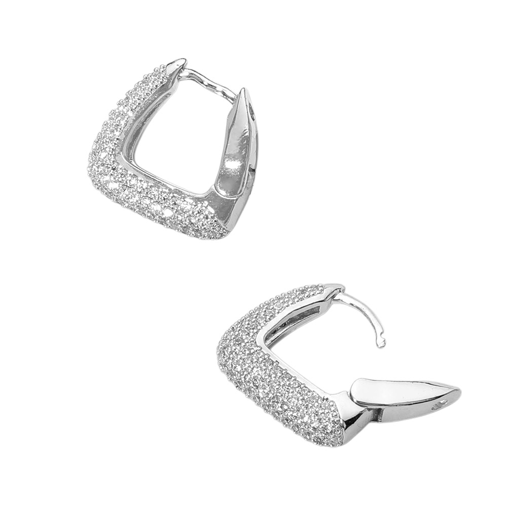 White Gold Dipped CZ Stone Paved Square Huggie Hoop Earrings