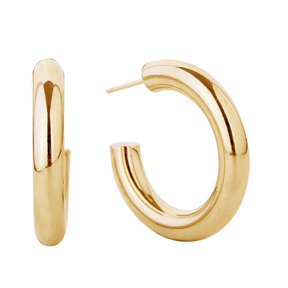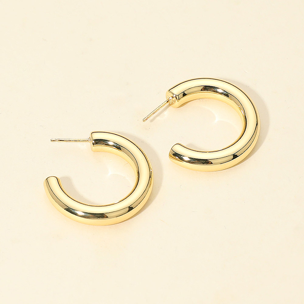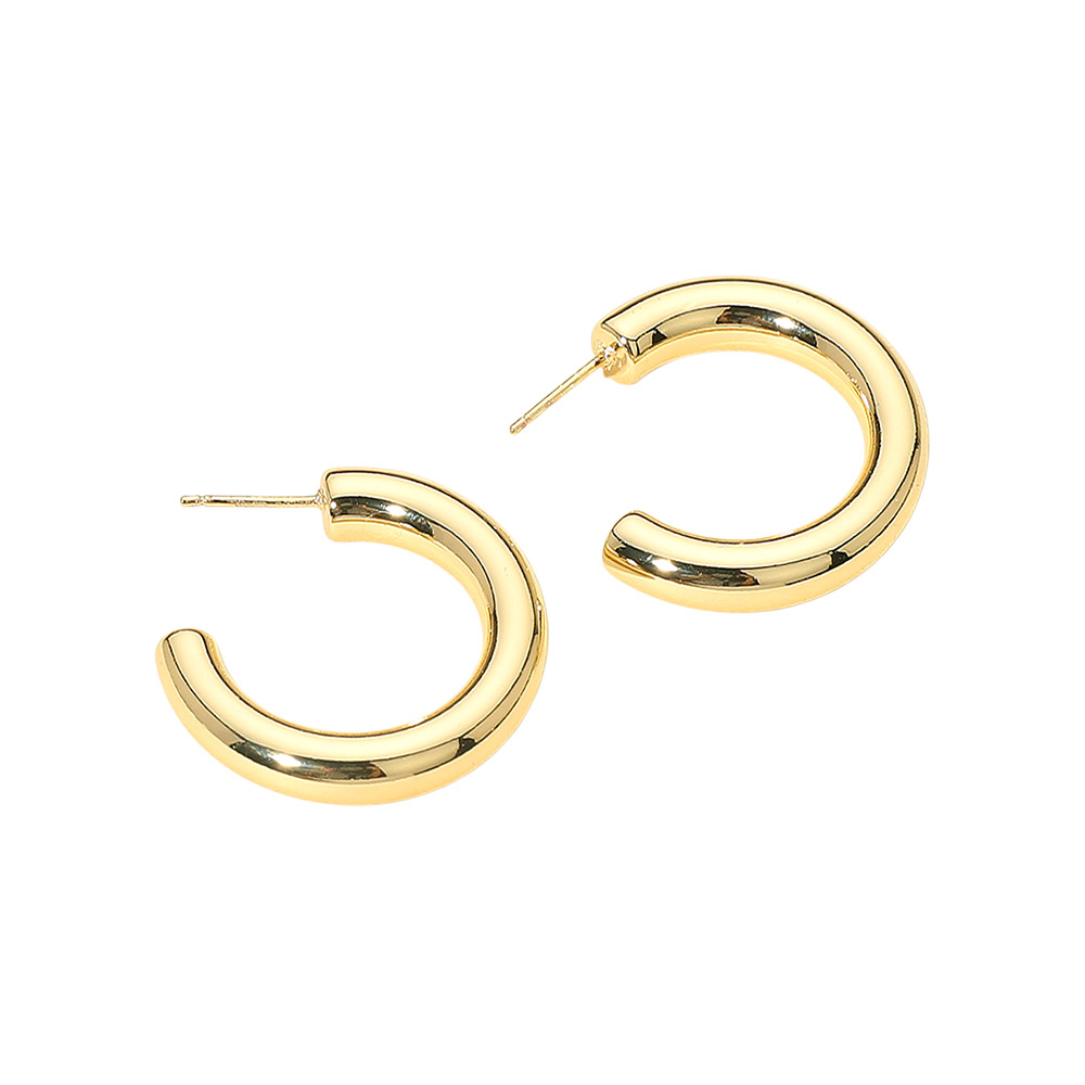 Details • Size : 1.2" X 1.2" • Post Back • Refined and versatile, these small open hoop earrings add a touch of modern polish to any outfit. Their sleek design offers timeless appeal, making them a perfect everyday essential that transitions seamlessly from work to evening wear. • Brass • Gold Dipped • Hypoallergenic • Lead and Nickel Compliant • Made In Korea