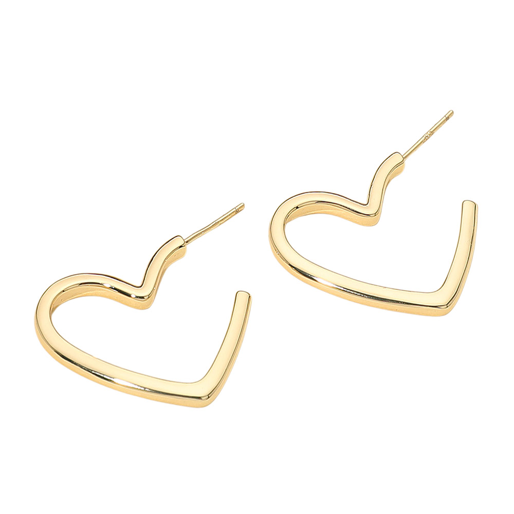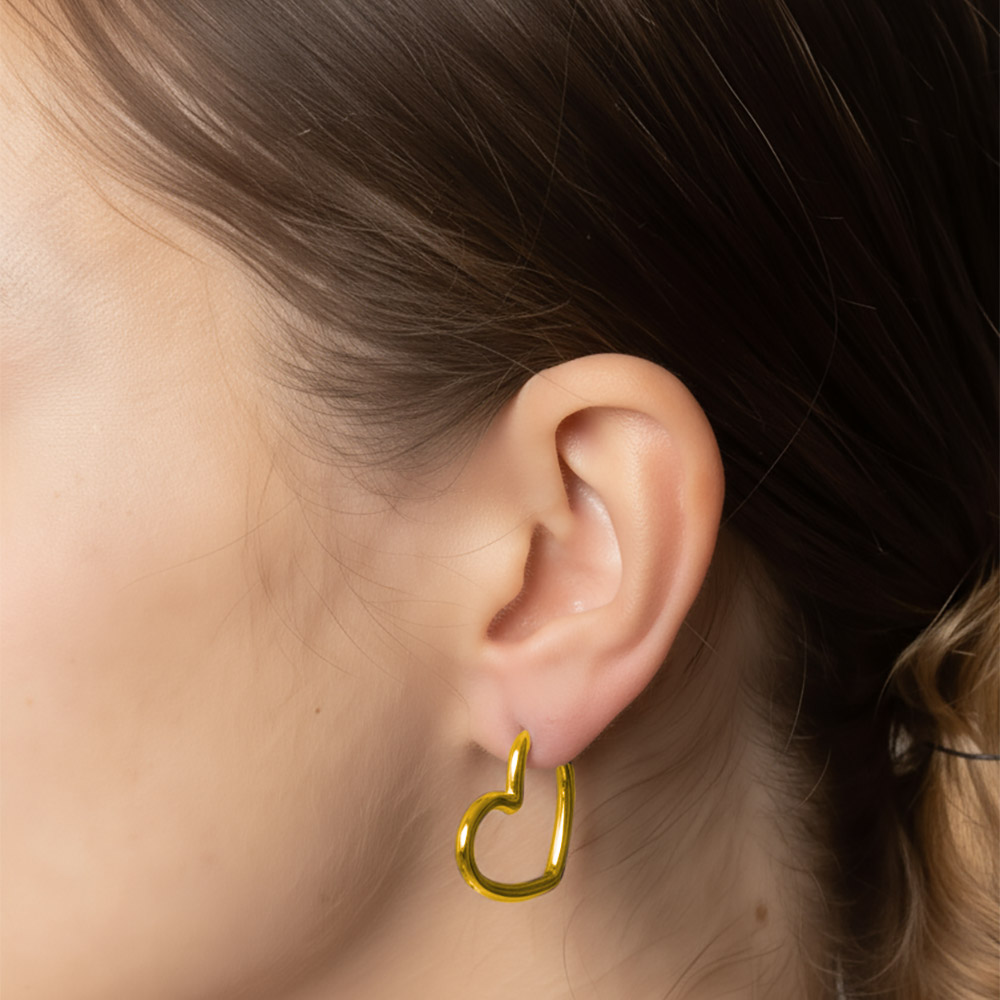 Details • Size : 1.2" X 1" • Post Back • Add charm to your look with these open heart hoop earrings, designed in a sleek and modern silhouette. Perfect for everyday wear or special occasions, these earrings make a thoughtful gift that blends elegance with a playful touch of romance. • Brass • Gold Dipped • Hypoallergenic • Lead and Nickel Compliant • Made In Korea