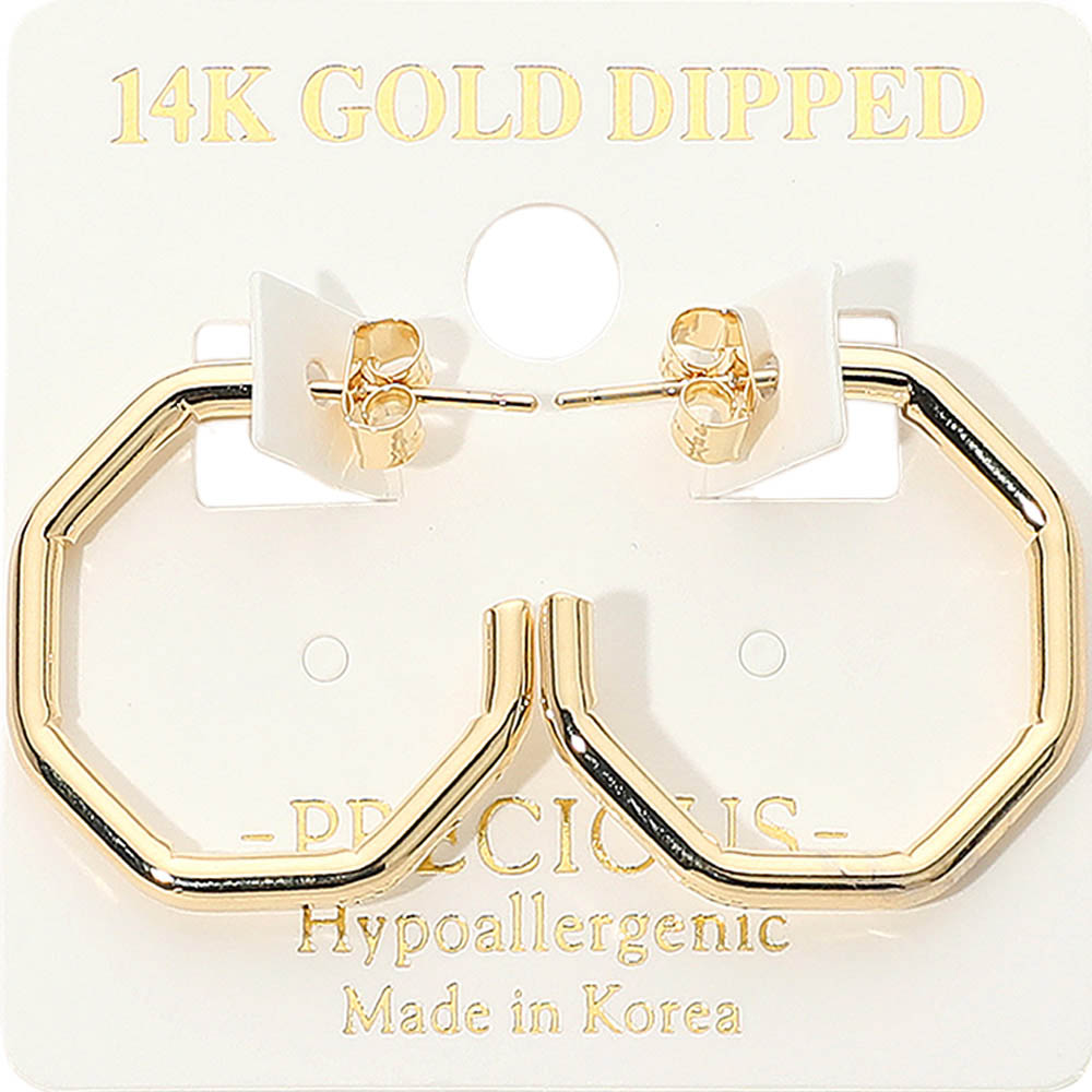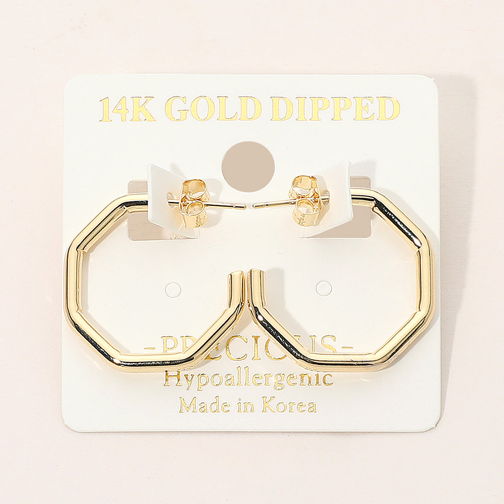 14K Gold Dipped Hypoallergenic Geometric Open Hoop Earrings