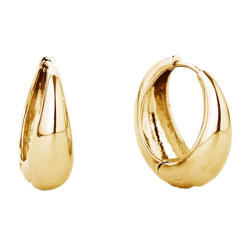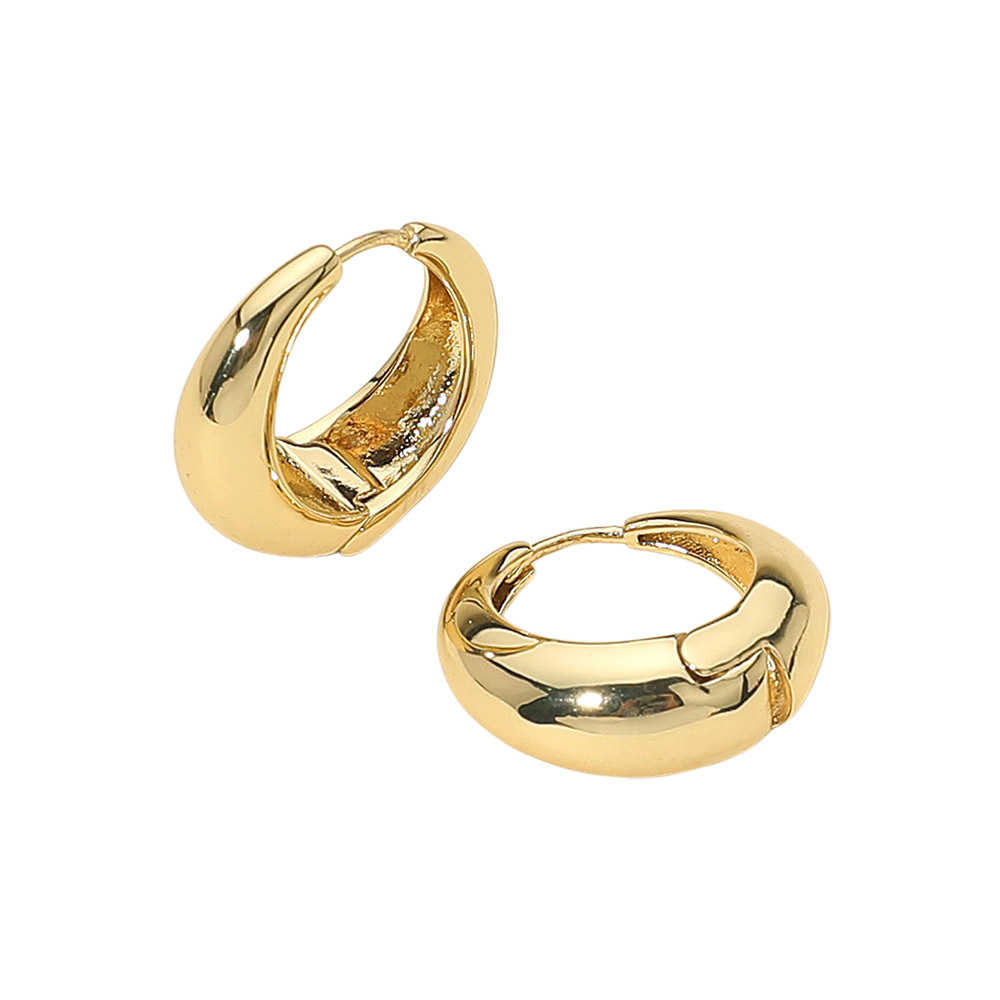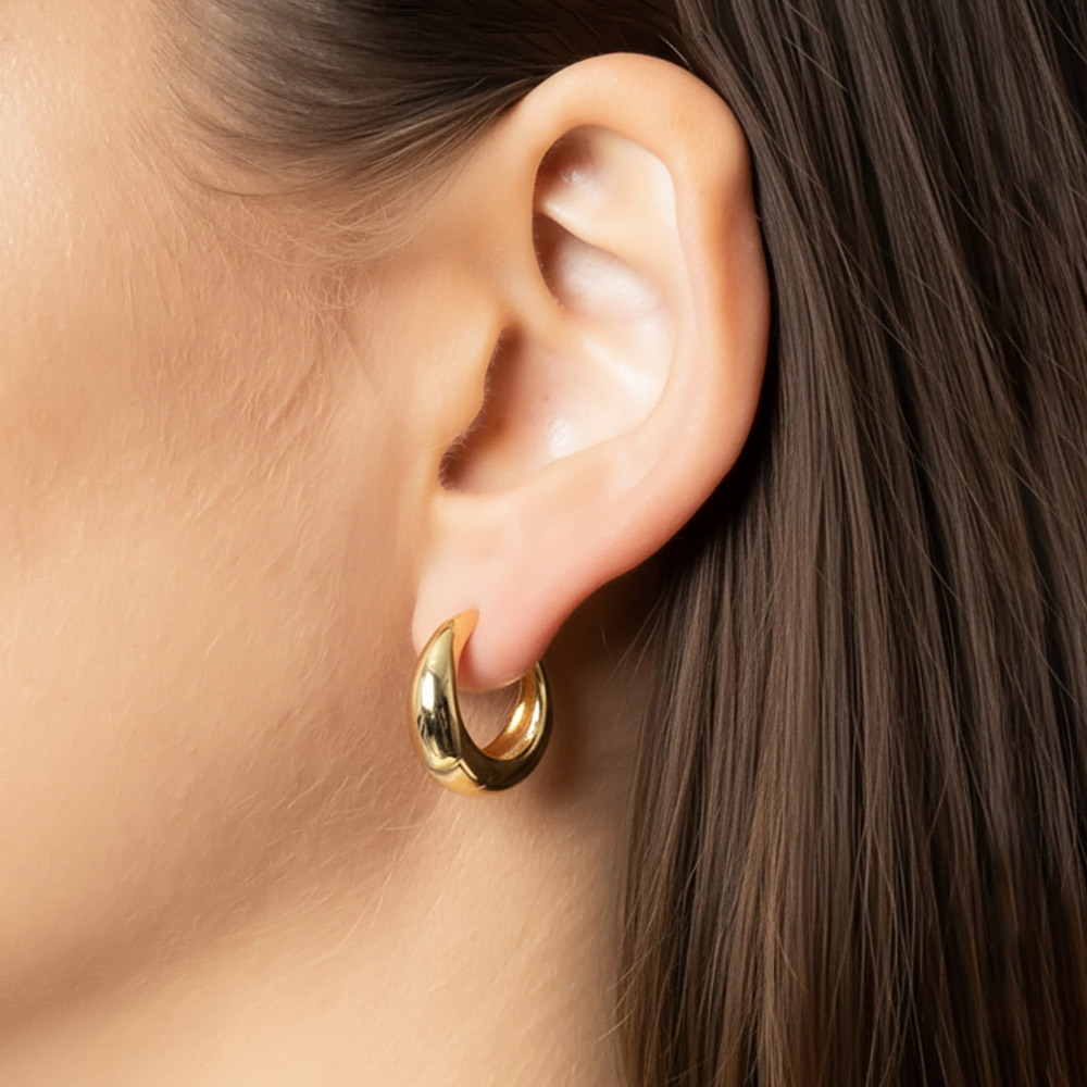 Details • Size : 0.8" X 0.8" X 0.3" • Huggie Back • Elevate your everyday look with these teardrop huggie earrings featuring a smooth, polished finish. Their sleek and modern silhouette adds timeless charm, making them a versatile accessory for both casual outfits and sophisticated occasions. • Lead and Nickel Compliant • Hypoallergenic • Made In Korea • Gold Dipped • Brass
