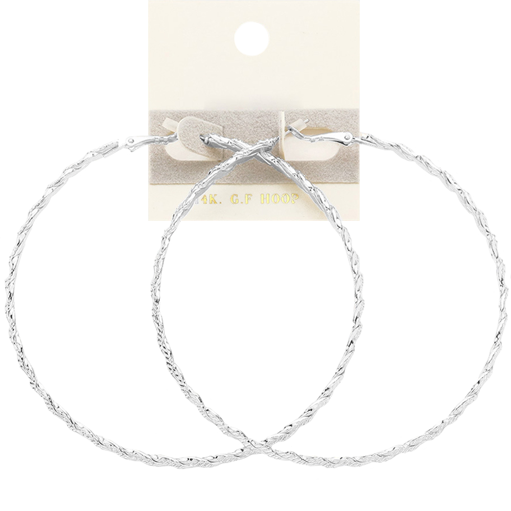 Details • Size : 3.25" X 3.25" • Omega Closure • These twisted textured hoop earrings offer a refined blend of subtle detail and everyday elegance. Their delicate winding design adds dimension and movement, creating a versatile accessory that enhances both casual and polished looks with a timeless, effortlessly chic appeal. • Lead and Nickel Compliant • Gold Dipped