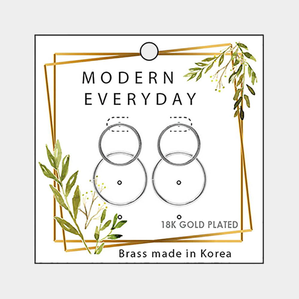 18K White Gold Plated Brass Double Metal Open Circle Earrings