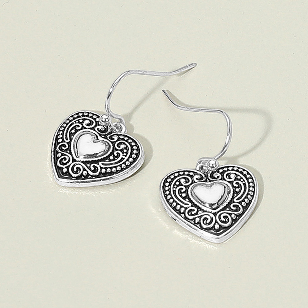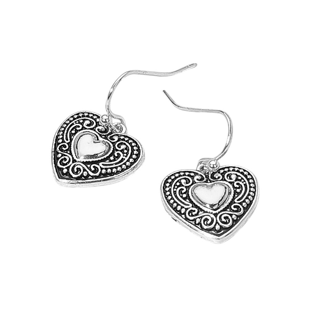 Antique Metal Vintage Heart Dangle Earrings