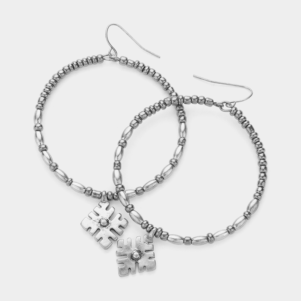 Boho Western Bow Turquoise Stone Center Heart Drop Dangle Earrings
