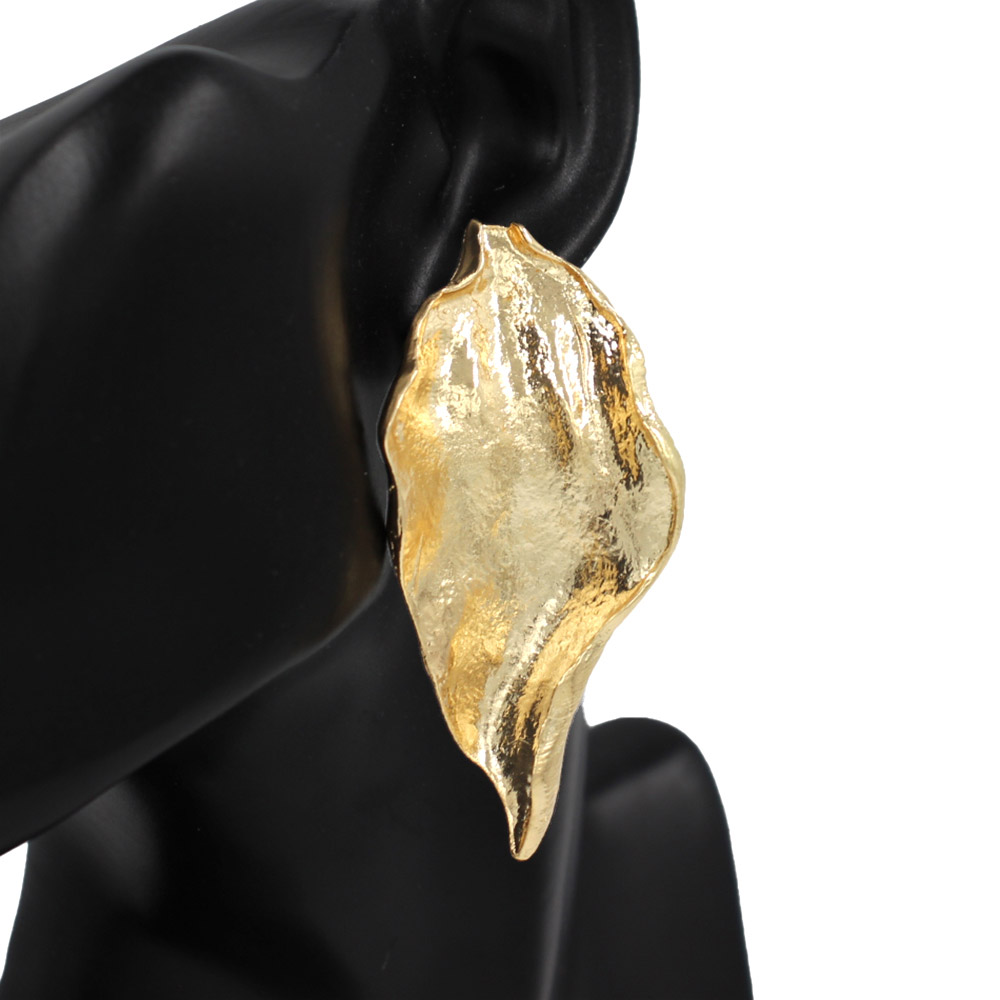 Details • Size : 1.25" X 3" • Post Back • These sculpted drop earrings feature an organic, fluid silhouette that adds bold artistic flair to any outfit. Their striking shape creates an elegant statement, offering a refined yet modern touch ideal for both elevated looks and everyday style. • Lead and Nickel Compliant