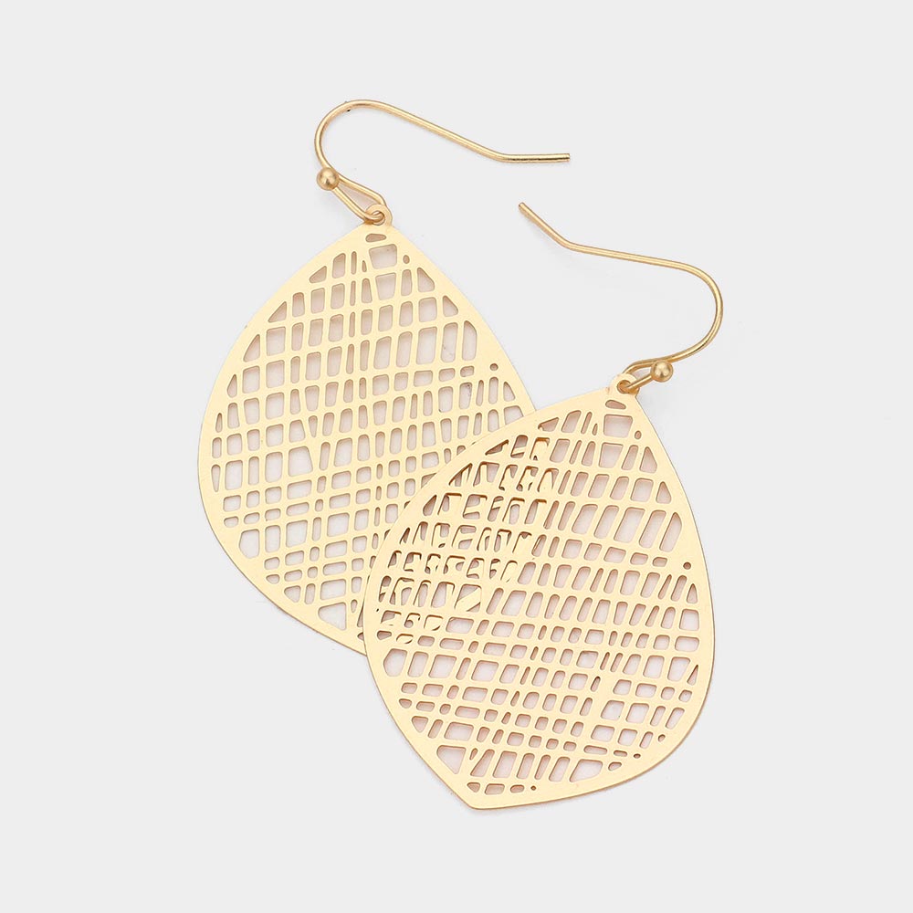 Brass Matte Metal Filigree Teardrop Dangle Earrings
