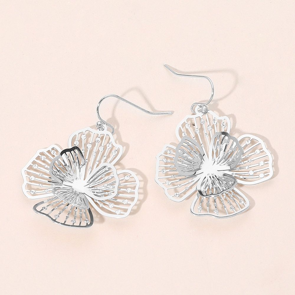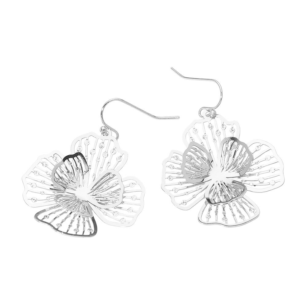 Details • Size : 1.4" X 1.8" • Fish Hook Back • Enhance your look with these delicate bloom petal drop earrings, featuring graceful floral cutout detailing and a lightweight design. Perfect for adding an elegant, feminine touch to any outfit, these earrings combine modern artistry with timeless sophistication for everyday charm. • Brass • Lead and Nickel Compliant