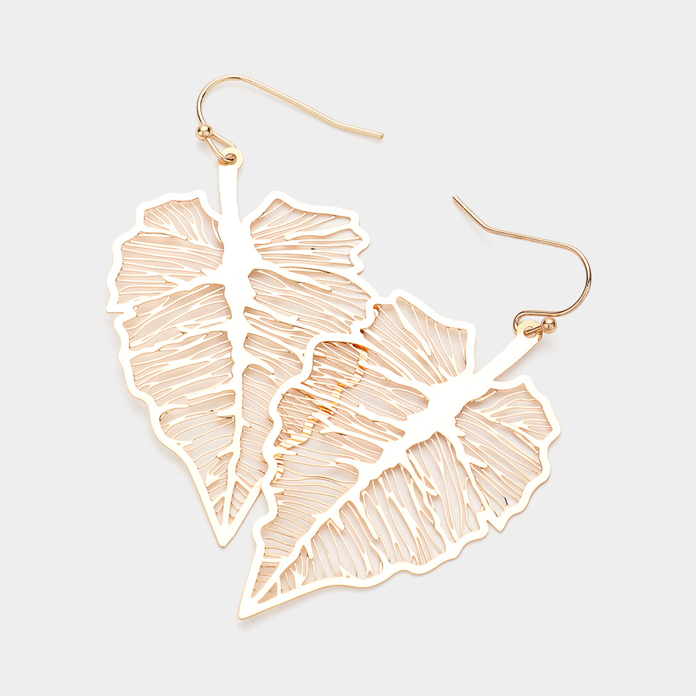 Metal Filigree Leaf Dangle Earrings