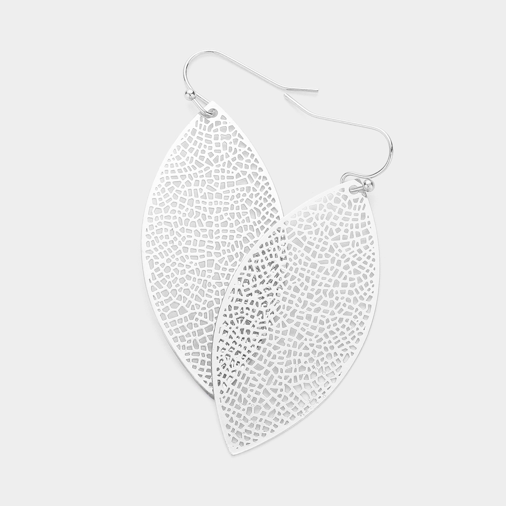 Brass Metal Filigree Marquise Dangle Earrings