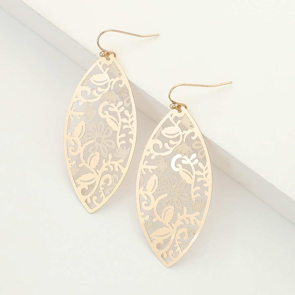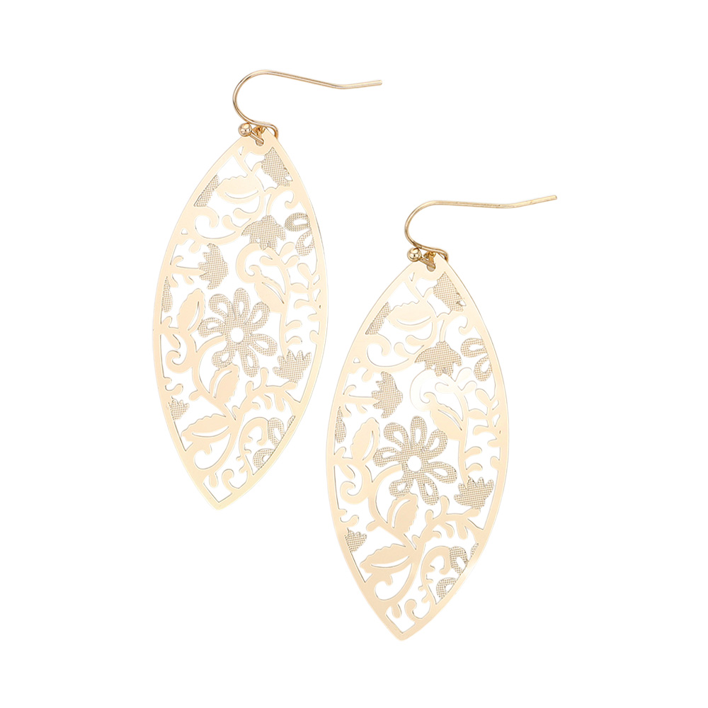Filigree Metal Teardrop Open Celluloid Acetate Layered Dangle Earrings