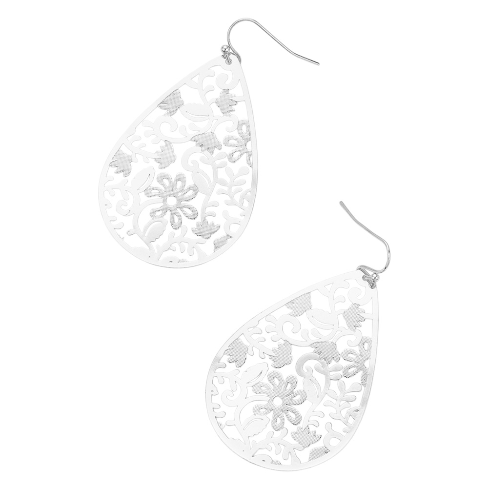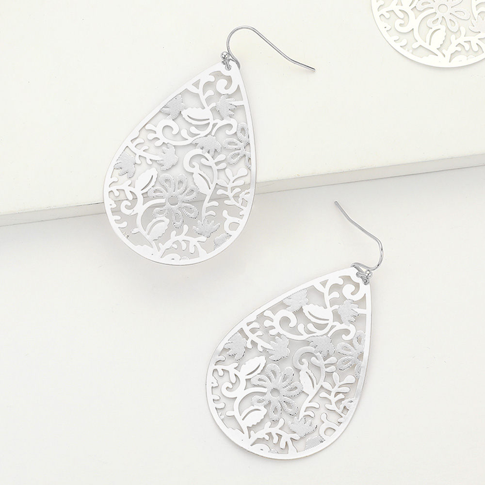 Flower Leaf Metal Filigree Round Dangle Earrings
