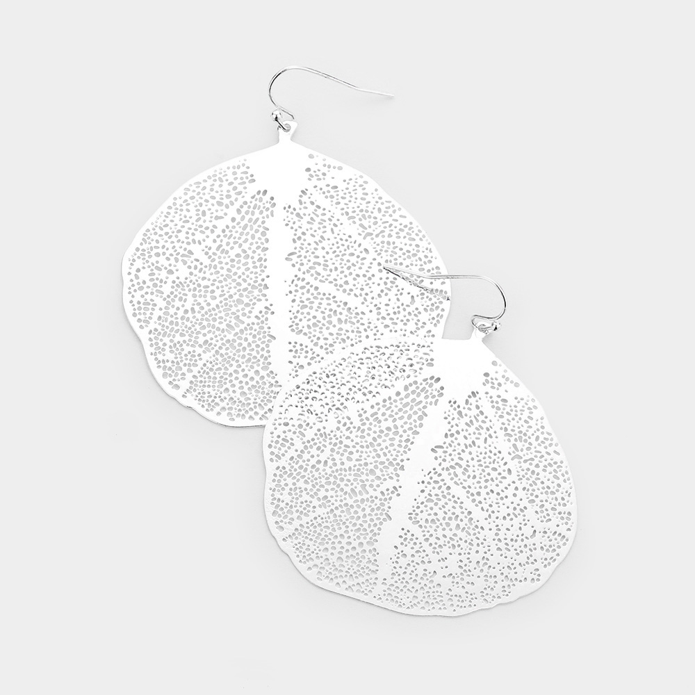 Pearl Pointed Resin Flower Accented Open Metal Oval Dangle Earrings