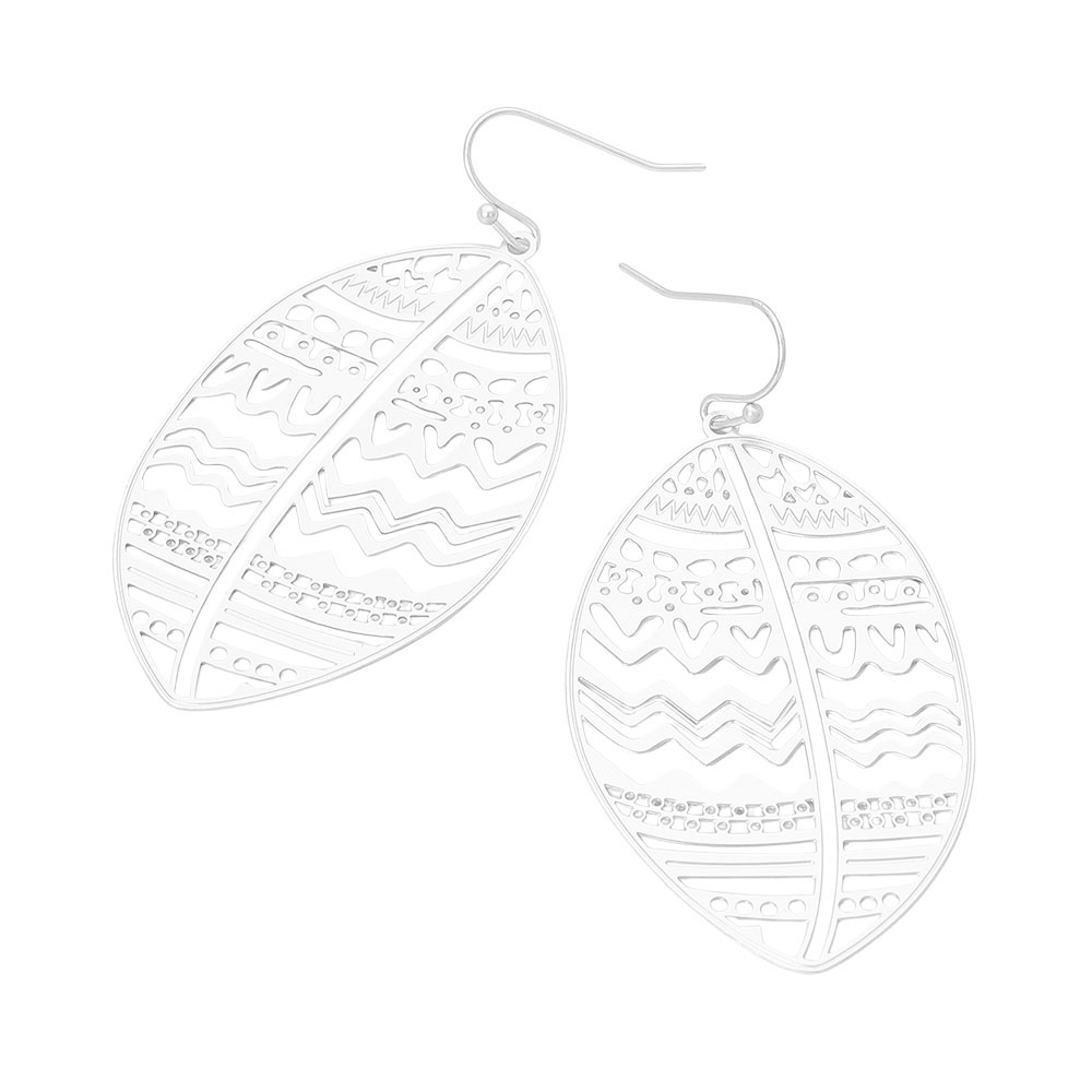 Brass Metal Tribal Pattern Cutout leaf Dangle Earrings