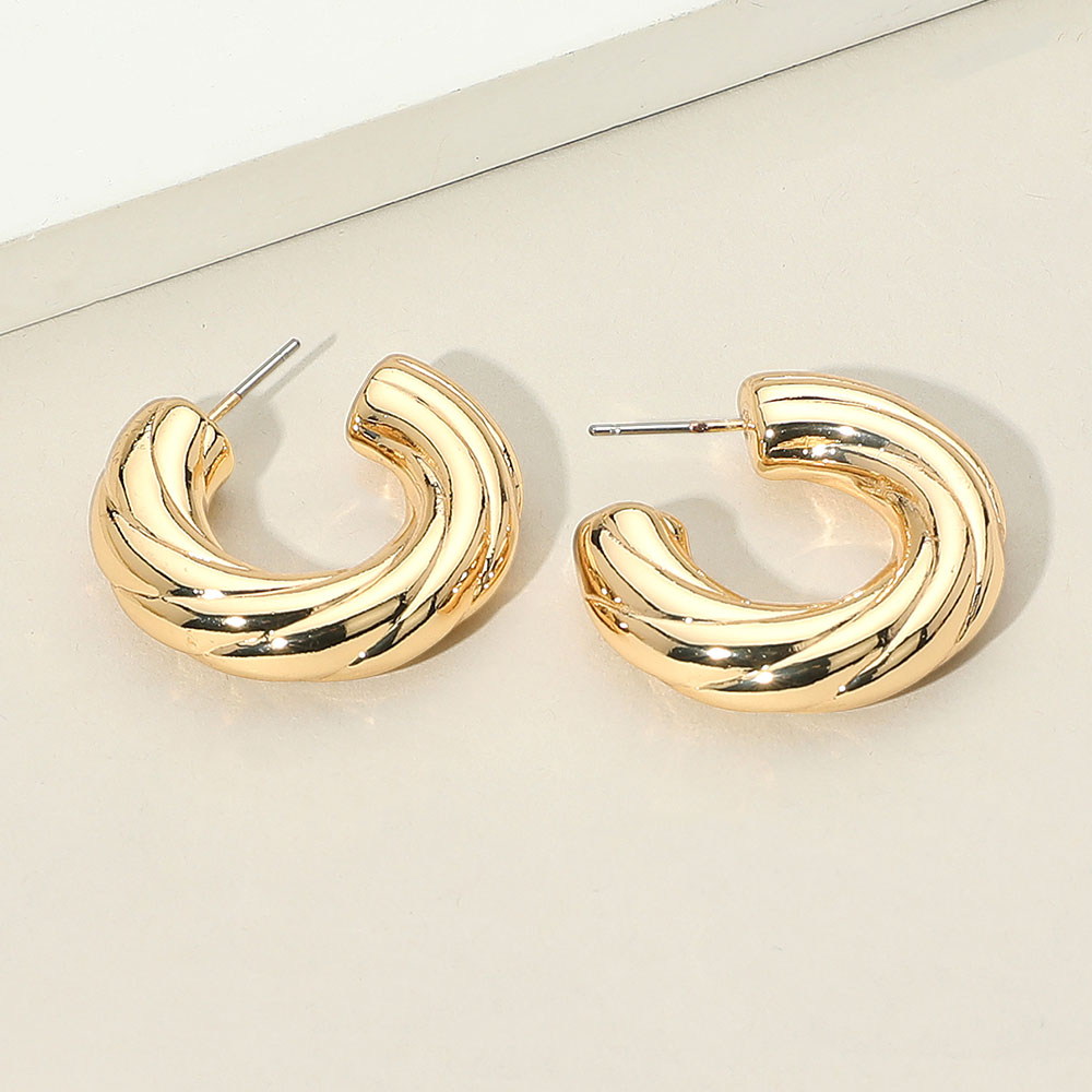 Chunky Metal Twisted Hoop Earrings