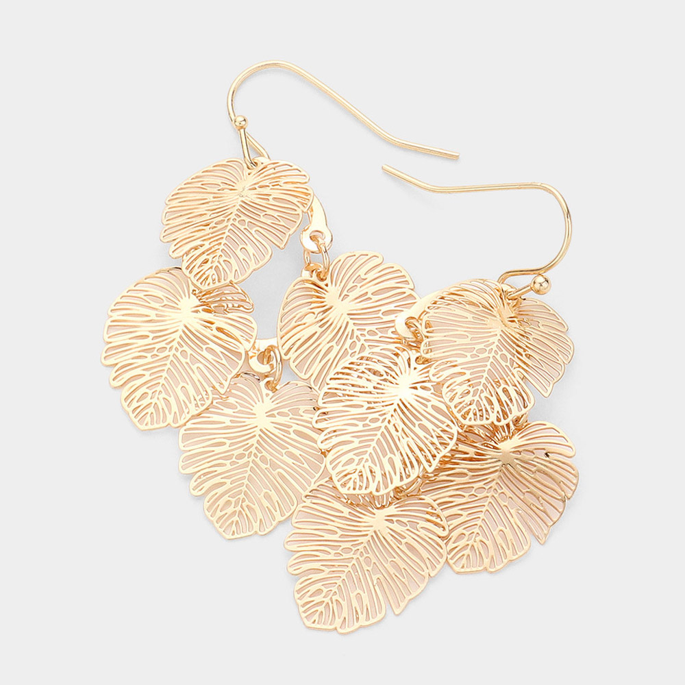 Metal Filigree Leaf Dangle Earrings