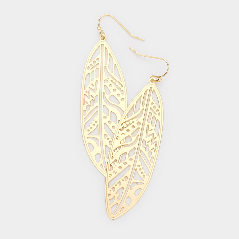 Metal Filigree Leaf Dangle Earrings