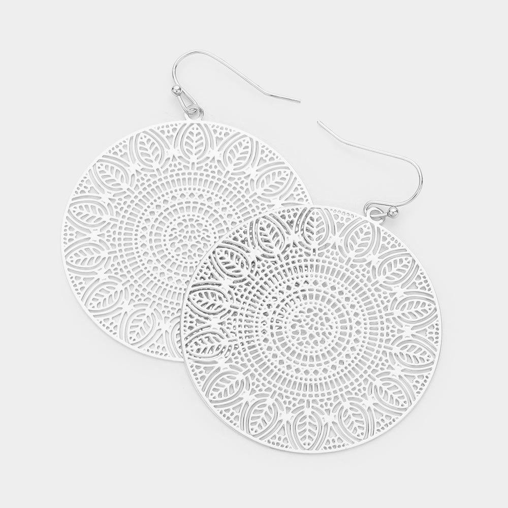 Brass Metal Filigree Abstract Oval Dangle Earrings