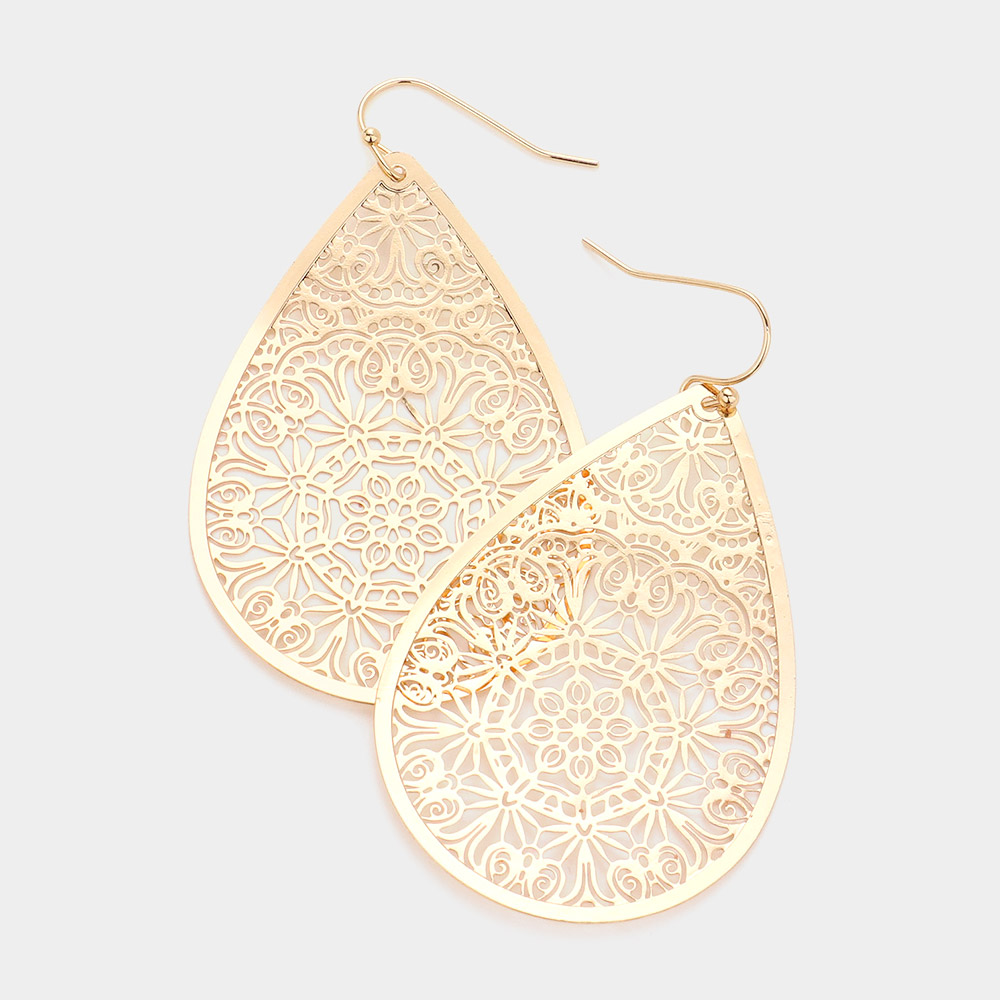 14K White Gold Dipped Filigree Metal Hoop Earrings