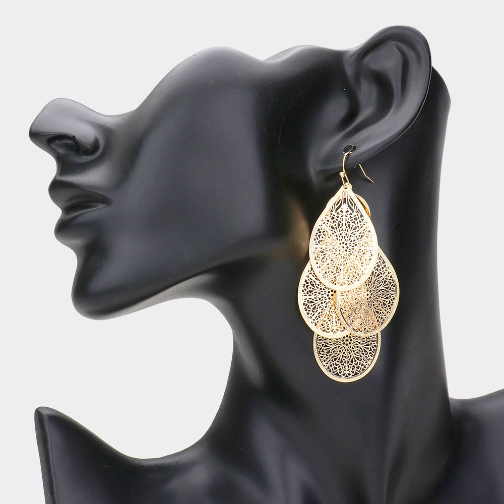 Filigree Leaf Cluster Silhouette Drop Earrings