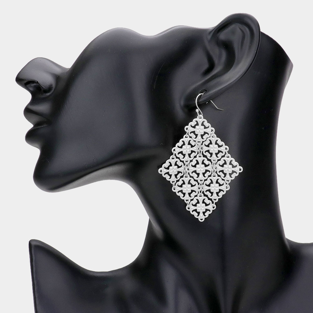 Filigree Rhinestone Pave Teardrop Pendant Necklace
