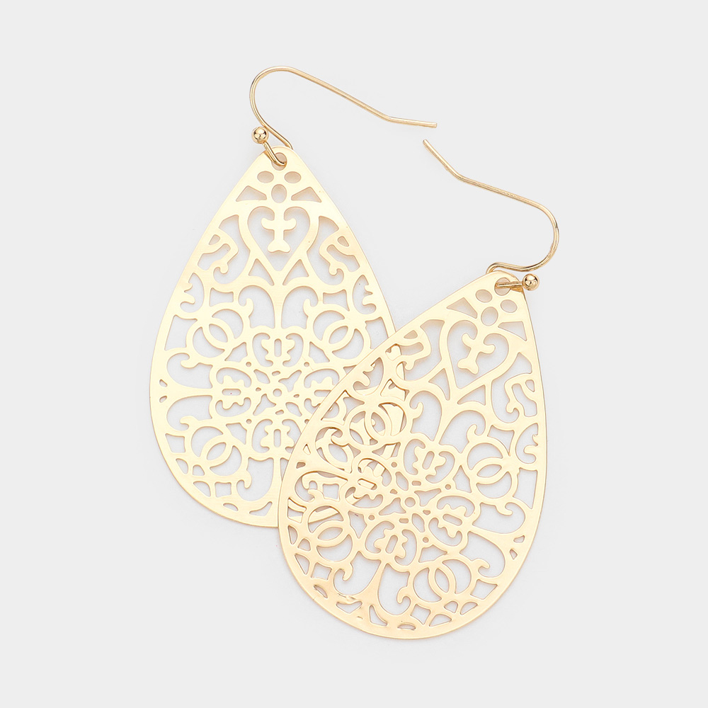 Filigree Rhinestone Pave Teardrop Pendant Necklace